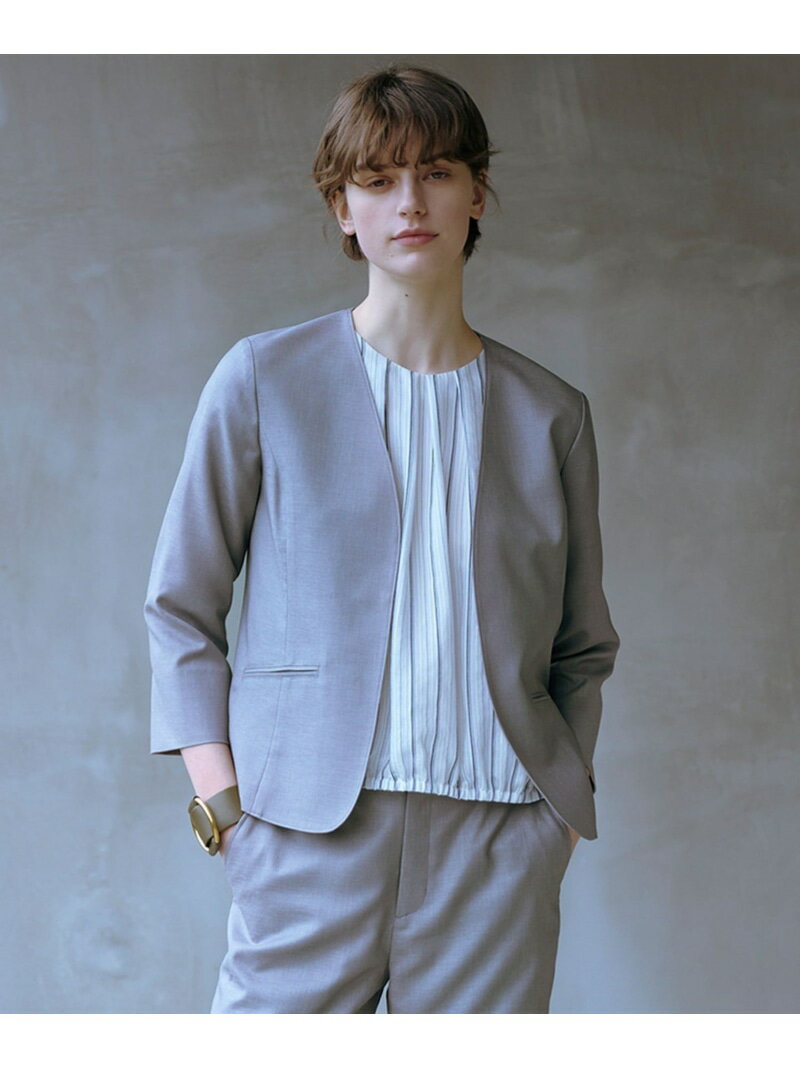 【セットアップ対応・洗える・UVケア・吸水速乾】OXIJEWELストレッチ ノーカラー ジャケット J.PRESS ジェイプレス ジャケット・アウター ノーカラージャケット グレー ベージュ ネイビー【送料無料】[Rakuten Fashion]
