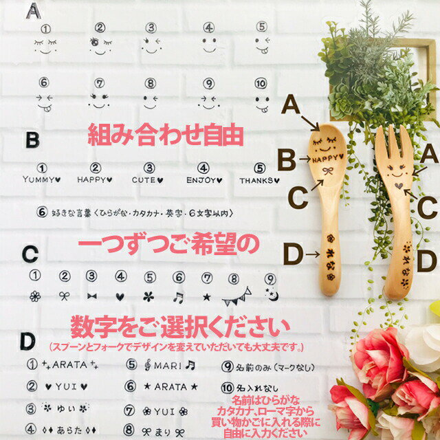 よく一緒に購入されている商品ギフト プレゼント 名入れ 木製 15cm ス2,180円名入れ 木製 15cm スプーン M 単品クリ1,100円ギフト プレゼント 名入れ 木製 12cm ス1,980円 商品詳細サイズ縦11×横2.5cm×高さ1.8cm 材質天然木合成・ウレタン塗装(中国製)備考名入れスプーン1本-フォーク1本のSET 電子レンジ・食器洗浄機使用不可オーブン使用不可●ご注意ください● ※天然木を加工しているため、 若干、形や色合いが異なる場合があります。そのため、重なりが悪いことがあります。※木製製品は使用しているうちに表面の塗装が剥げてくる為、 水分や油分がしみ込みやすくなり、変色やシミの原因となる 場合がございます。 ※水の中に浸け置いたままにしないでください。 ※直接火に触れたり、熱くなる場所に置かないでください。 ※湿気の多い場所や直射日光のあたる場所はお避けください。 ※事前によくチェックしていますが、目立たない程度の製造過程での傷、よごれなどある場合もございます。 ※ご使用後は、手早く洗浄して乾燥させた状態で保管してください。 水の中に浸け置いたままにしておくと、変形、変色、におい移りのほか、剥離や劣化の原因にもなります。 ≪洗浄について≫ 絞った布きんで拭くか、やわらかいスポンジや布で手早く水洗いし、 布きんでしっかりと水気をふき取って乾燥させて下さい。 【関連キーワード】 名入れ 名前入り 持ちやすい 誕生日 プレゼント ギフト 誕生祝い こどもの日 子供の日 クリスマス 離乳食 お食い初め 未満児 赤ちゃん 幼稚園 保育園 類似商品はこちらギフト プレゼント 名入れ 木製 12cm ス1,980円名入れ 木製 12cmフォーク S 単品ギフト1,000円名入れ 木製 12cm スプーン S 単品ギフ1,000円メール便対応可木製 木 天然木 ナチュラル 右750円メール便対応可木製 木 天然木 ベビースプーン380円メール便対応可木製 天然木 ベビースプーン ベ1,880円名入れ 木製 15cm フォーク M 単品ない1,100円ギフト プレゼント 名入れ 木製 12cm ス1,100円ギフト プレゼント 名入れ 木製 15cm ス2,180円新着商品はこちら2025/11/19AWASAKA ORIGINAL BRAND 550円2025/11/19AWASAKA ORIGINAL BRAND 880円2025/11/19AWASAKA ORIGINAL BRAND 880円再販商品はこちら2025/11/20藍凛堂 宝づくし RI80 丸皿 24×3.51,740円2025/11/20藍凛堂 ぶどう RI80 丸皿 24×3.5c1,740円2025/11/195.8cm 角型 ミニ プレート レッド 赤 220円2025/11/20 更新freesia cute×Kitchen Mart D-まちのうつわ屋さん-コラボ商品。温かみのある木のカトラリーに、かわいいお顔とお名前を焼き入れします。 普段使いはもちろん、出産祝い、誕生日プレゼント、 お食い初めなどの名前入りプレゼントに。心を込めて一つ一つ職人が名入れします。取っ手がカーブして赤ちゃんが持ちやすいスプーン&フォークSET。 ご自宅用の簡易包装とプレゼント用の無料ラッピング包装をお選びいただけます。 デザインは上記写真からスプーンはA・B・C・Dを、フォークはA・C・Dをご選択ください。 (スプーンとフォーク別々のデザインでも大丈夫です。) スプーンBの6番、Dの1-9番をご選択いただいた方は 買い物かごに入れる際にご希望の文字をひらがな、カタカナ、ローマ字のいずれかで入力してください。 20文字までしか入力できないため、複数のパターンが入力しきれない時は、お手数ですが、何回かに分けて、買い物かごに入れてください。 ご注文時、確認が必要な場合は確認後の制作手配となるため、 お届けまで、通常よりお時間がかかります。 発送は制作会社からの直送となるため、当商品と別商品を一緒に購入いただいた場合には それぞれの発送手配となりますので、ご了承ください。(その際、送料を別途請求させていただきます。) 手作りでの制作となるため、ご注文から発送まで1-2週間お時間をいただいております。 日時指定は出来かねますので、ご了承ください。 freesia cute×Kitchen Mart D-まちのうつわ屋さん-コラボ商品ラインナップメール便送料無料2200円ベビースプーン&フォークSETメール便送料無料1980円12cmスプーン&フォークSETメール便送料無料1000円・スプーン単品 ・フォーク単品メール便送料無料2180円15cmスプーン&フォークSETメール便送料無料1100円・スプーン単品 ・フォーク単品メール便送料無料1100円スポーツ柄12cmスプーン単品メール便送料無料1180円スポーツ柄15cmスプーン単品