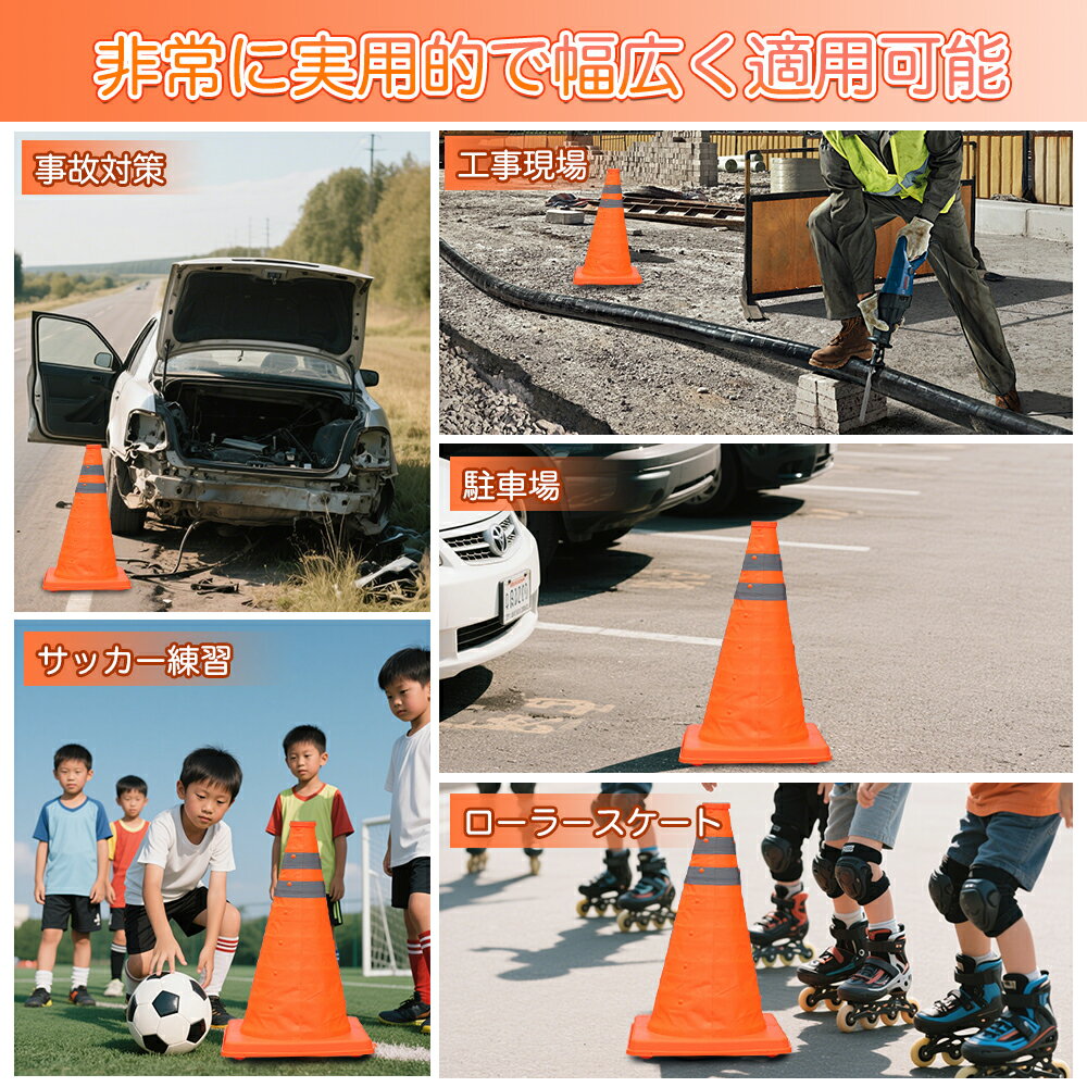 ★10%OFF→3582円★折りたたみ カラーコーン 高さ450mm 伸縮式コーン PP 三角コーン 反射材付 高視認性 駐車禁止 コーン 駐車場 安全警告 軽量 持運び/設置簡単 4個セット コーンリング