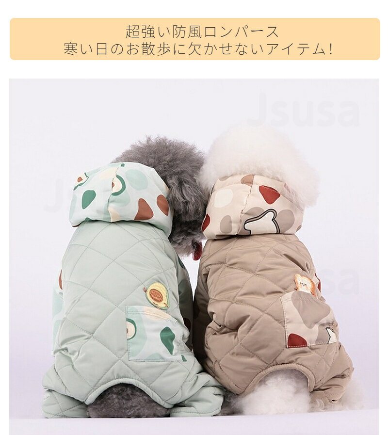 小型中犬服 秋冬 中綿パーカー 防風 防寒 中綿つなぎ ジャケット アウター 防寒 長袖 暖かいコート 保温 中綿 秋冬 厚手洋服 ペットウェア ドッグウェア 犬の服 ロンパース カバーオール 袖あり 秋服 冬服 寒さ対策 おしゃれ 冬用 ネコポス送料無料!【ra43711-1】