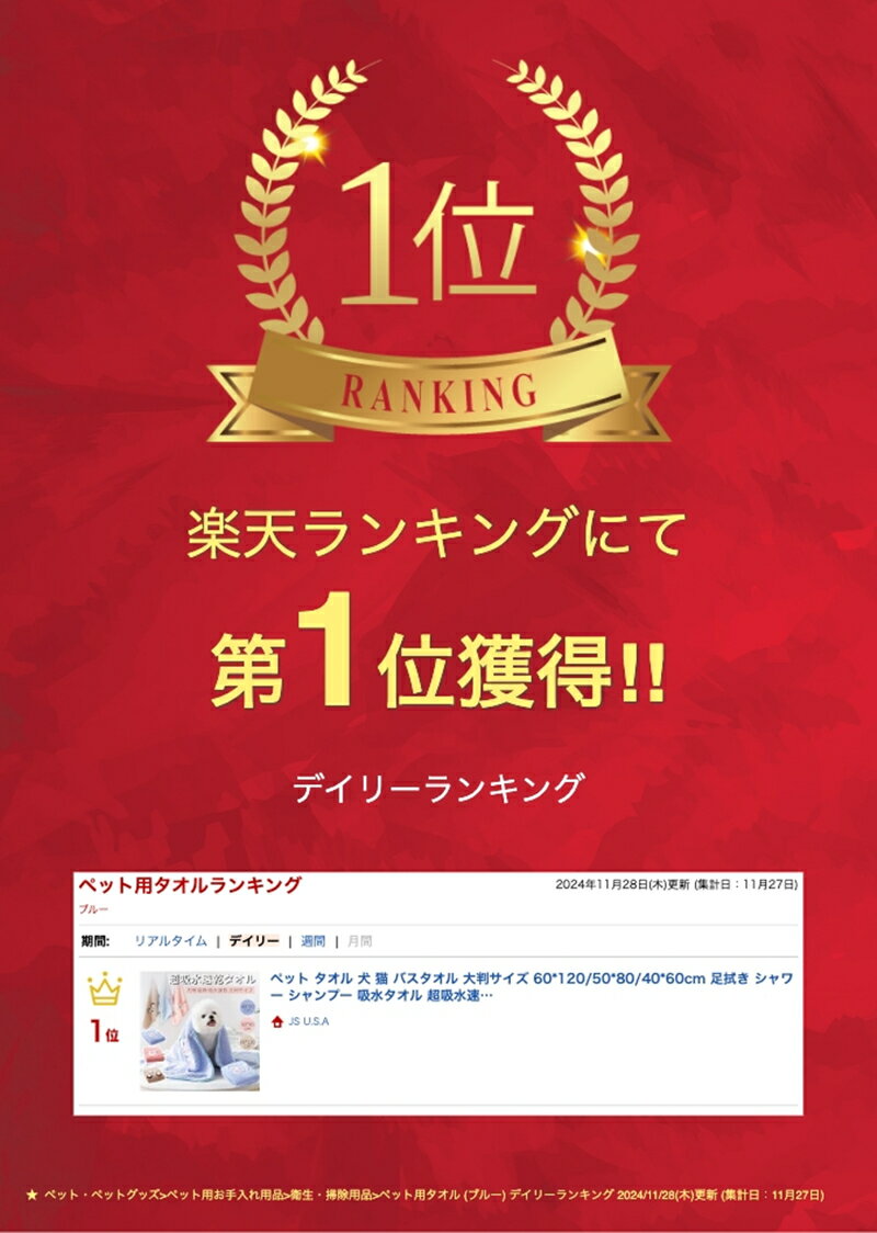 詳細: ●高品質ナノファイバー素材。 包み込むように拭いてあげるだけで、たっぷり超吸収のふんわり柔らか厚手のペット用タオル。 ●優れた吸水力で水滴を瞬時にしっかり吸収。 シャンプー後のドライ時間を短縮し、ワンちゃん猫ちゃんのストレスを軽減。 ●絞るだけで吸水力復活。 たっぷり水分を含んだタオルはぎゅっと絞るだけで、元の超吸水力が復活。 ●シャンプー後はもちろんお散歩後の足洗い後の拭きとりにもおすすめ。 引っ掛けておける便利なループ紐付きです。 素材:ナノファイバー サイズ:40*60cm/50*80cm/60*120cm ※付属品はございません。 ※仕入れる生産ロットにより、色合いや模様の出方が若干変わる場合がございます。予めご了承ください。 ※専門撮影写真は光の加減等によって、多少実際のカラーと異なる場合がございます。 ※ご使用のモニター環境によって実際の色味と画面上の色味は異なる場合がございます。 ※色についての返品や交換はお受けできませんので予めご了承ください。 ※輸入商品について、製造過程における小さなキズ、シミなどが見られる場合がございますが、不良品ではございません。 ※画像はイメージです。 関連キーワード:超吸水 速乾 ドライヤー時間短縮 超吸収タオル 多用途 バスタオル ボディータオル 足拭きタオル 驚きの吸収力 犬用 猫用 耐久性 超吸収 高品質ナノファイバー イエロー グレー ループ付 吸水力 入浴 タオルドライ ハンドタオル ペット用タオル お風呂タオル バスタオル ふわふわ 暖かい 柔らかい ミディアムプードル ミニチュアプードル チワワ ダックスフント ポメラニアン 柴犬 ヨークシャテリア ミニチュアシュナウザー トイプードルフレンチブルドッグ ブルドッグ ビーグル ヨーキー シーズー パグ 小型犬 中型犬 コッカースパニエル ボーダーコリー シェルティ ピットブル ボクサー ウィペット スピッツ ビーグル ブルドッグ ゴールデンレトリバー ラブラドールレトリバー シベリアンハスキー アラスカンマラミュート スタンダードプードル ラフコリー ボルゾイ ワイマラナー ロットワイラー シェパード ドーベルマン グレートデン バーニーズ グレートピレニーズ セントバーナード ニューファンドランド 土佐犬 秋田犬犬用 猫用 ペット お風呂 シャワー シャンプー 吸水 タオル 【最新登録】小/中/大型犬用ペット用着れるバスタオル ! 【大判サイズ】小/中/大型犬用ペット用吸水タオル ! 【手入れポケット付き】ペット用吸水タオル! 最新入荷!ふわふわ暖かいペット用 ブランケット! 最新入荷!ふわふわ暖かいペット用 ブランケット! 最新入荷!小中型犬服犬洋服 可愛いチョッキ! 最新入荷!小中型犬服犬洋服 秋冬防寒モコモコ暖か!
