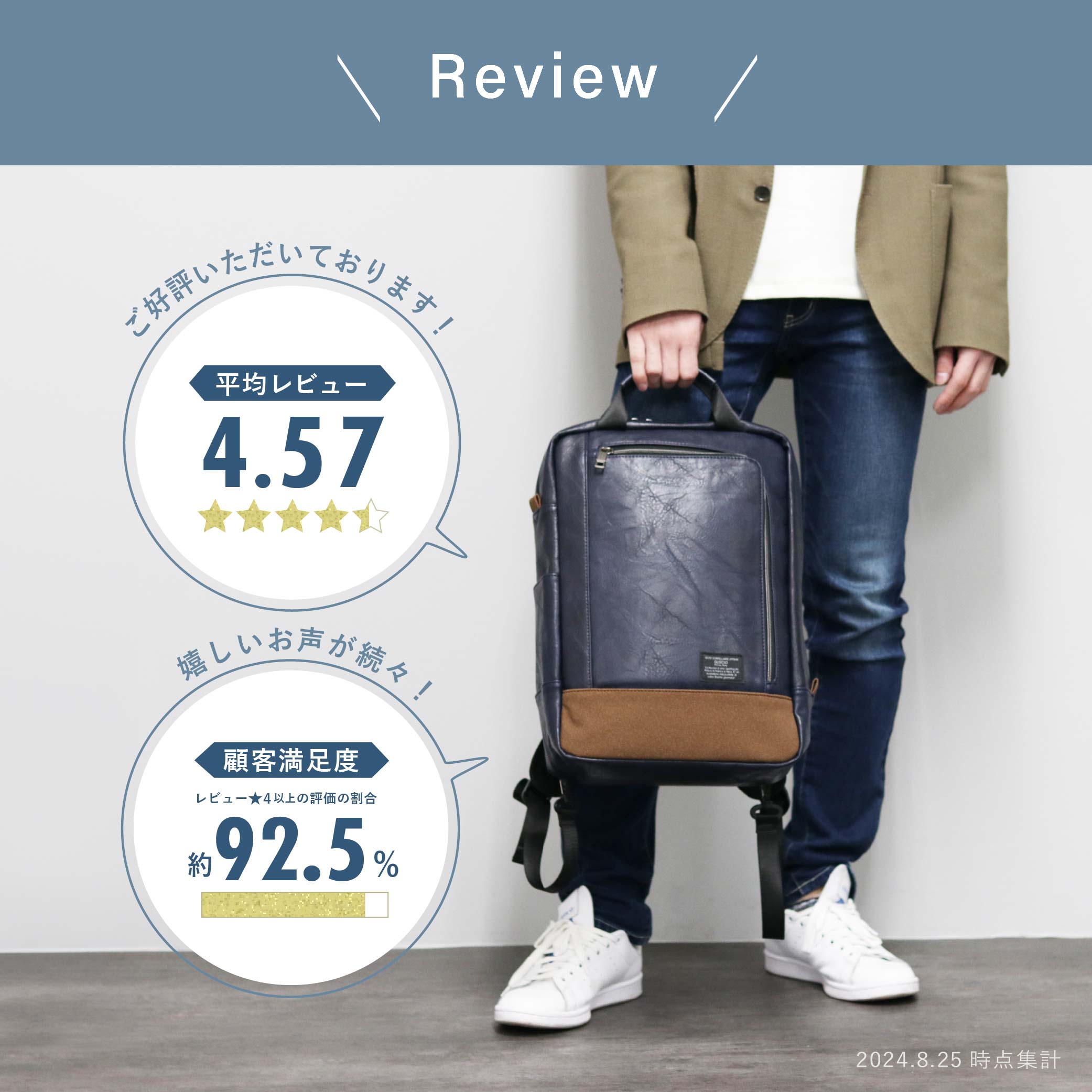 ビジネス リュック 撥水 軽量 出張 メンズ 小さめ おしゃれ a4 通学 防水 シンプル ブランド 大学生 キャリーオンバッグ 薄型 PUレザー 革 ビジネス カジュアル メンズ PC収納 イタリア グッシオ ウォーモ イタリア レザー グッシオイタリー これらのワードに興味がある方はぜひ商品をご覧ください。 【機能性とデザイン性兼備、大人のリュック】 程良いシボ感のある生地は本革バッグのようなフィーリングで上品な大人の印象。Mサイズはショルダーを外して手提げとしても利用可能な2WAY仕様です。さらにスーツケースの上に乗せることができるベルト付きで、旅行や出張のサブバッグとしても活躍。デイリーユースからビジネスまで、シーンを選ばず使えます。 【充実の収納スペース】 内部にはクッション付きのポケットでPCの持ち運びが可能です。 A4サイズの書類と14インチのPCを同時に収納可能な広々としたスペースを実現しています。 外部には小物の収納がしやすいポケットも完備しています。また、背面には出張時などに便利なキャリーケースホルダーも付いています。 【撥水機能付きの高品質のPUレザー】 カバンの本体は高品質なPUレザーを使用しており、柔らかくもちもちとした触り心地が特徴で、本革に近い見た目と質感があります。 また、優れた撥水性を持ち、急な雨や汚れからあなたの大切な荷物を守ります。 【使い心地重視】 重い荷物を入れても肩が痛くなりにくい、太く肩にフィットするショルダーベルトを採用しています。 さらに、背面にはメッシュ素材を採用し、電車での通勤など長時間背負っていても蒸れません。 Lサイズ・Mサイズ共に本体はわずか600g台と、軽くて使いやすいです。長時間の使用でも快適な持ち運びを実現します。 【便利な2way仕様】 背負う・手提げに使える便利な2way仕様です。 ビジネス・カジュアル・通勤・通学など様々な場面で幅広く活躍できるリュックサックです。 サイズ・仕様 【Lサイズ】 重量・容量:重量:640g/容量:13.7L サイズ:幅 :28.5cm 高さ :40cm マチ :12cm 素材:PU レザー / 裏地:ポリエステル 開口部:ファスナー 仕様:外ポケット:前面ファスナーポケット(ペン入れ×3、スマホケース×1)、サイドポケット/内ポケット:バッグ内側にクッション付きPCポケット 【Mサイズ】 重量・容量:重量:670g/ 容量:10.0L サイズ:幅:26.5cm / 高さ(中央部):38cm / マチ:10cm 素材:PUレザー / 撥水ナイロン 開閉部:ファスナー 仕様:外ポケット:前面ファスナーポケット(ペン入れ×3、スマホケース×1)、右サイドポケット、背面ファスナーポケット / 内ポケット:オープンポケット×1 ・モニターの発色具合によって実際のものと色が異なる場合があります。メーカー希望小売価格はメーカーサイトに基づいて掲載していますビジネス リュック 撥水 軽量 出張 メンズ 小さめ おしゃれ a4 通学 防水 シンプル ブランド 大学生 キャリーオンバッグ 薄型 PUレザー 革 ビジネス カジュアル メンズ PC収納 イタリア グッシオ ウォーモ ギフト クリスマス プレゼント おしゃれ イタリア レザー これらのワードに興味がある方はぜひ商品をご覧ください。 グッシオ ウォーモ 優れた輝きを意味をもつイタリアフィレンツェ生まれのブランド、『グッシオ』のメンズライン。 都会的で洗練されたデザインをベースに、イタリア・スペインなどの ヨーロピアンスタイルをミックス。 細かなディティールやシルエットを大切にし、格好良さの本質を追求しました。年齢をとわず、持つ人、使う人のライフスタイルをより豊かにするバッグをお届けします。 【機能性とデザイン性兼備、大人のリュック】 程良いシボ感のある生地は本革バッグのようなフィーリングで上品な大人の印象。Mサイズはショルダーを外して手提げとしても利用可能な2WAY仕様です。さらにスーツケースの上に乗せることができるベルト付きで、旅行や出張のサブバッグとしても活躍。デイリーユースからビジネスまで、シーンを選ばず使えます。 【充実の収納スペース】 内部にはクッション付きのポケットでPCの持ち運びが可能です。 A4サイズの書類と14インチのPCを同時に収納可能な広々としたスペースを実現しています。 外部には小物の収納がしやすいポケットも完備しています。また、背面には出張時などに便利なキャリーケースホルダーも付いています。 【撥水機能付きの高品質のPUレザー】 カバンの本体は高品質なPUレザーを使用しており、柔らかくもちもちとした触り心地が特徴で、本革に近い見た目と質感があります。 また、優れた撥水性を持ち、急な雨や汚れからあなたの大切な荷物を守ります。 【使い心地重視】 重い荷物を入れても肩が痛くなりにくい、太く肩にフィットするショルダーベルトを採用しています。 さらに、背面にはメッシュ素材を採用し、電車での通勤など長時間背負っていても蒸れません。 Lサイズ・Mサイズ共に本体はわずか600g台と、軽くて使いやすいです。長時間の使用でも快適な持ち運びを実現します。 【便利な2wa