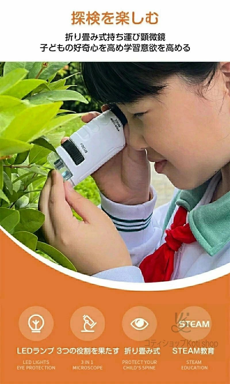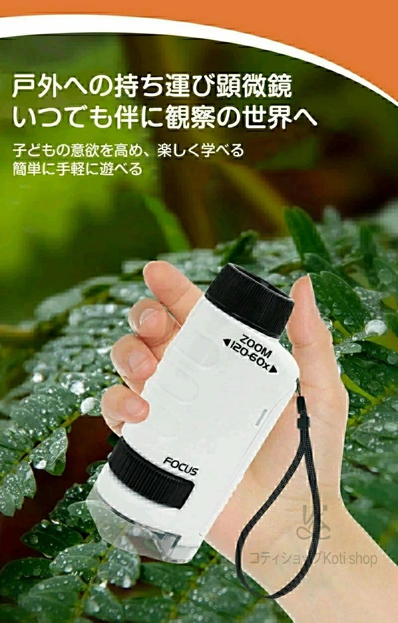 顕微鏡 小学生 ミニ顕微鏡セット ハンディ顕微鏡 60~120倍拡大 子供用 スマホホルダー おでかけ顕微鏡 LEDライト有り 品質