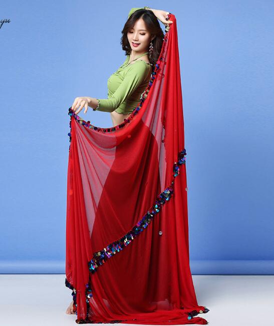 ベリーダンス衣装 ベール スカーフ 大判サイズ 社交ダンスグッズ 舞台ステージ道具 ラメ入 スパンコール 黒赤2色 ロング 紗