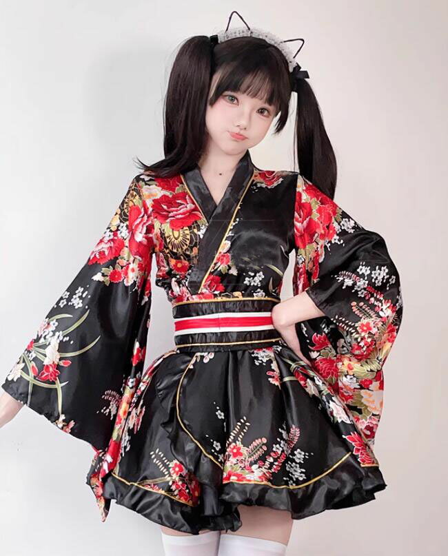 コスプレ衣装 和服 着物 レディース 和風 ハロウイン コスプレ衣装 膝丈 ショート丈 着物ドレス 振り袖 花柄 和風 仮装 コスプレ 大人 コスチューム 浴衣 COSPLAY イベント 文化祭 余興 ダンス衣装 コスプレ 衣装 黒 赤 白