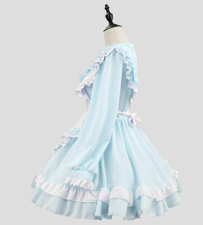 メイド服 セーラー服 大人 セーラー風メイドコス 新作 長袖 ショート丈 キュート メイドドレス 裾フリル エプロンドレス ピンク 水色 女子 マリン風 甘ロリー メイドコスチューム ハロウィンコスプレ衣装 萌え萌え コンカフェ ウェイトレス 大きいサイズ有 S~5XL