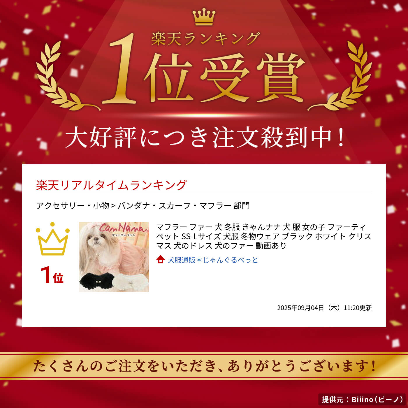 マフラー ファー 犬 冬服 きゃんナナ 犬 服 女の子 ファーティペット SS-Lサイズ 犬服 冬物ウェア ブラック ホワイト クリスマス 犬のドレス 犬のファー 動画あり マフラー 衿ファー