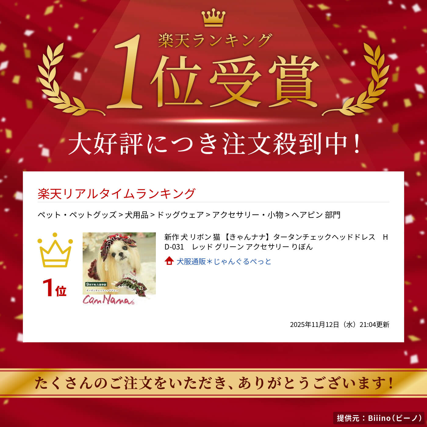 新作 犬 リボン 猫 【きゃんナナ】タータンチェックヘッドドレス HD-031 レッド グリーン アクセサリー りぼん