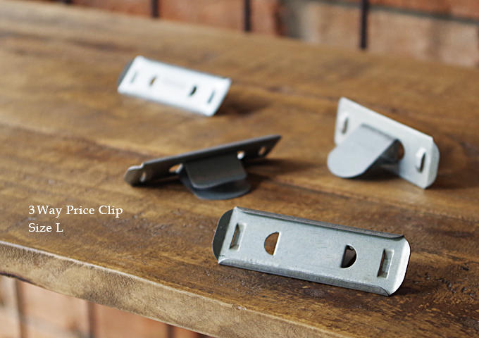 サイズ : 【全体】 全体:W60×D21×H17/mm 【使用できるカードのサイズ】 W52×H15/mm ※若干の個体差がございます。 材質 : 金属 備考 : 素材の質感をいかした作りの為、色味や仕上がりなど商品によって固体差や、細かい傷などがございます。 予めご了承の上お買い求めください。 ◆ 3Way Price Clip S◆ 3通りの使い方ができるスリーウェイプライスクリップの【Sサイズ】 。 ショップでのプライスタグや、ご自宅での書類の分類、整理などに調度良いサイズです。 水まわりやガーデンコーナーでのご利用も◎。 やや大きめの【Lサイズ】はこちらから。 別カラーも含めた、シリーズ一覧はこちらよりご覧いただけます。 デザインはとてもシンプルですが、裏側にクリップが付いているため、平置きはもちろん アイデア次第でクールにセッティングできます。 1つ1つあえてムラを残した形や質感は、まるで本物のアンティークのような仕上がり。 主張しすぎず、それでいて存在感があり、飾る物を上品に引き立ててくれます。 ※こちらの商品にはカードは含まれておりません。 ※製造時及び長距離輸送時において発生した塗装ムラ・塗装落ち・若干の歪み・小キズ・ プラスチックの白化等がみられることがございます。あらかじめご了承下さい。 表面です。カードも簡単にお取り付けいただけます。 背面です。 3通りの使い方が出来るため、あらゆるシーンに対応します。クリップがポイントとなっております。 あえてラフな作りになっています。 商品の出荷時期によって細かな傷や、汚れ、歪みがある場合がございます。 商品の味としてお楽しみ下さい。 こちらのページでは【Galvanaizedカラー・Sサイズ】をお求めになれます。【Lサイズ】はこちらから。