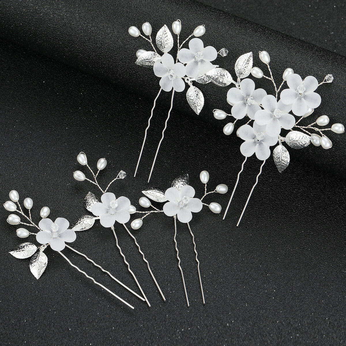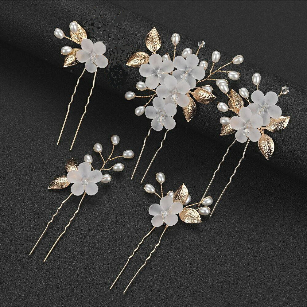 髪飾り 5点セット ヘアピン かんざし パール クリアフラワー 白 花 結婚式 成人式 卒業式 和装 洋風 着物 留袖 振袖 訪問着 色打掛 袴 浴衣 シルバー ゴールド ヘアアクセサリー お呼ばれ 前撮り 日本髪 40代 50代