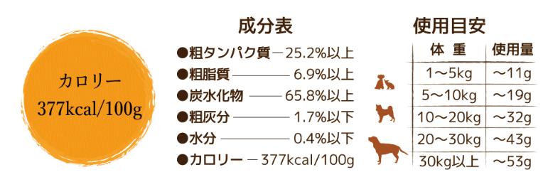 サクッと軽い質感に仕上げたノングルテンのフリーズドライクッキー お肉(レバー含む)を50%使用し、生地の素材にもこだわりました。 有機オートミール、国産米粉、豆乳を使用 小麦は使用せず、フリーズドライならではの旨味と香りをたっぷり閉じ込めたさっくり軽い食感 -------------------------------------- 【成分表】粗タンパク質25.2%以上 粗脂肪6.9%以上/ 炭水化物65.8%以上 粗灰分1.7%以下 水分0.4%以下 カロリー:377kcal/100g 国産