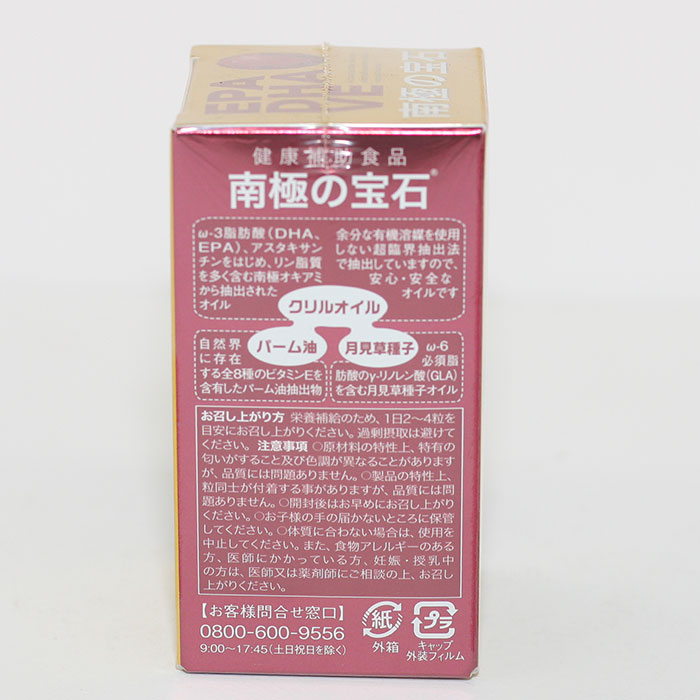 健康補助食品 甲陽ケミカル 南極の宝石 60粒 [商品説明] 注目の次世代型オメガ3オイル=クリルオイル(南極オキアミ油)を使用。 8種のビタミンE含有のトコミン、γ-リノレン酸含有の月見草種子オイル配合。 ■栄養成分表(2粒950mg当たり) エネルギー・・・6.1kcal たんぱく質・・・0.3g 脂質・・・0.5g 炭水化物・・・0.1g 食塩相当量・・・0.002g n-3系脂肪酸・・・120.0mg V.E・・・2.13mg クリルオイル・・・500mg(リン脂質210mg、DHA32.5mg、EPA60mg) パーム油抽出物・・・5mg 月見草種子油・・・125mg 商品詳細 商品番号 kyc_008 名称 南極オキアミ油加工食品 原材料名 クリルオイル(南極オキアミ油)、γ-リノレン酸含有月見草種子油/ゼラチン、グリセリン、トコトリエノール 内容量 28.5g[1粒重量475mg(1粒内容量325mg)×60粒] 賞味期限 パッケージに記載 保存方法 直射日光、高温多湿を避けて保存してください。 広告文責 株式会社 寿草 販売者 甲陽ケミカル株式会社 大阪府大阪市北区太融寺町1-17