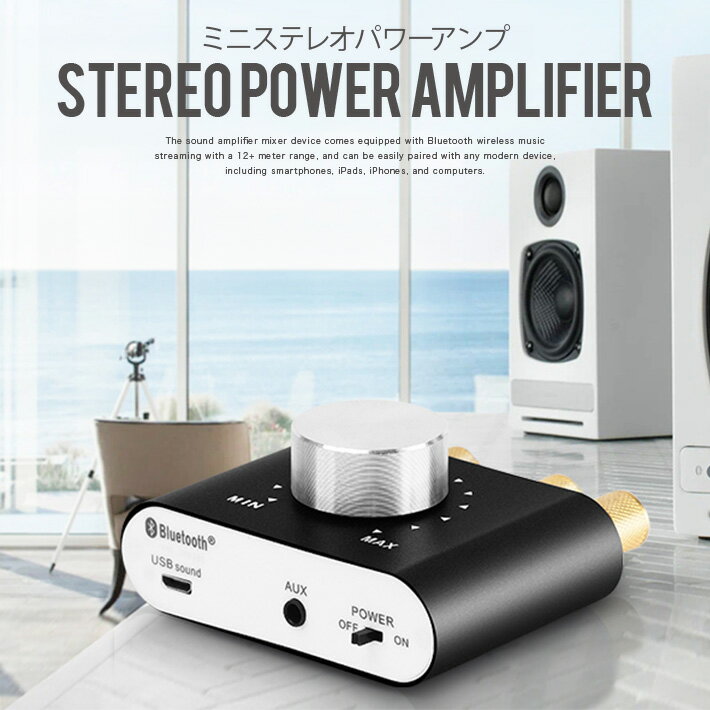ミニオーディオアンプ Bluetooth1 5.0 2.0チャンネル 100W ブルートゥースアンプ ACアダプター付き Bluetooth/USB/AUX入力サポート アルミ製 黒