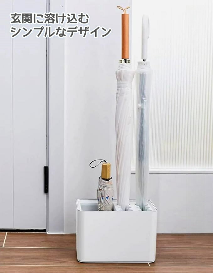 商品情報[サイズと素材]サイズ(約):図上。材質:上質ABS、PP。本体重量(約):1kg。コンパクトなサイズながら、ある程度重量感あるので、簡単に倒れないです。[収納仕様二種類用意]長傘6本と折りたたみ傘4本、合わせて10本と長傘9本と折りたたみ傘6本、合わせて15本の傘が収納できるコンパクトな傘立てです。一人住まいにも家族住まいにもおすすめです。[水受け皿着脱可能]取り外し可能な水受け皿だから、しっかり雨水をキャッチできるし、サッと取り外して排水も楽々です。[シンプル]シンプルな形状ですが、玄関に置いて、スペースを広く確保できます。現代感が溢れているデザインは、玄関のアクセントとして、落ち着いた雰囲気を演出してくれます。[色々な場所で活躍]滑り止めベースで、安定感が良いです。玄関、屋内、オフィス、ショップなどいろいろな場所に活躍しています。使わないときは、靴箱に収納可能です。傘立て アンブレラスタンド おしゃれ スリム 北欧 傘入れ 傘収納 10本挿し 15本挿し錆びない 折りたたみ傘 アンブレラスタンド水受け皿着脱可能 コンパクト 玄関収納 傘立て アンブレラスタンド おしゃれ スリム 北欧 傘入れ 傘収納 錆びないコンパクト 玄関収納 5