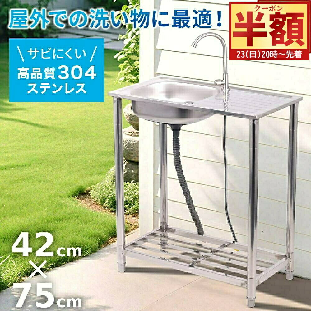 流し台 屋外 ステンレス 水栓付 蛇口付き シンク アウトドア 幅広 水栓付き キッチン 屋外用 ステンレス流し台 ステンレスキッチン キャンプ バーベキュー ガーデンシンク 屋外シンク 屋外流し台 簡易流し台 洗い場