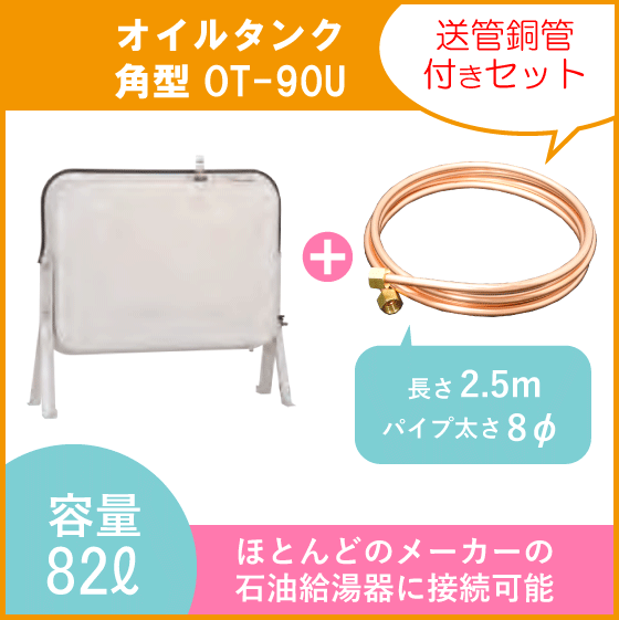 灯油タンク オイルタンク(角型) 送油銅管セット 油給湯器 ボイラー用 OT-90U 短脚タイプ CHOFU