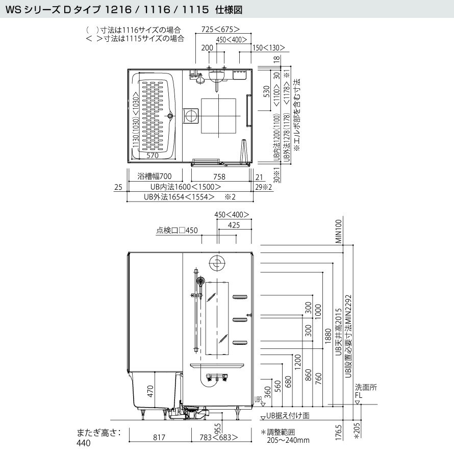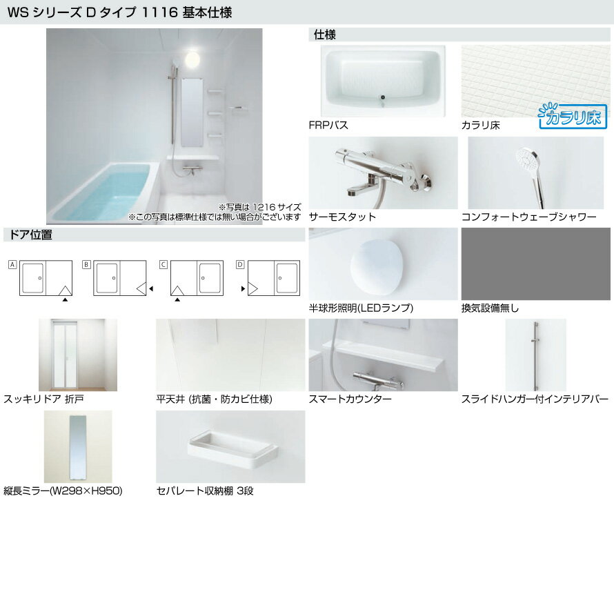 TOTO システムバスルーム マンションリモデルバスルーム:WSシリーズ Dタイプ 1116サイズ 基本仕様 マンションリモデル用