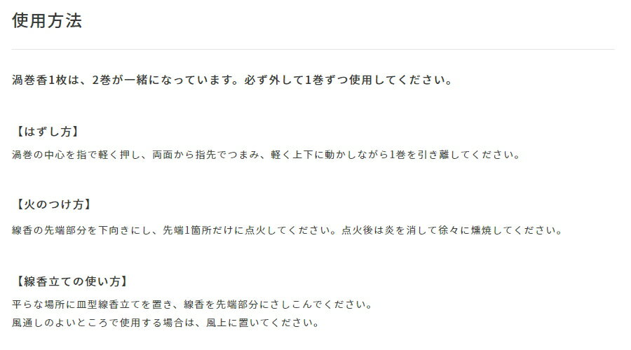 ●キャンプや山仕事におすすめ!驚きの煙量でアブ・ブユに効く虫よけ線香。 ●通常の線香よりも太さ&煙の量が3倍(メーカー比)。 ●アブ、ブユを忌避でき、パワフルな効果を感じられる線香です。 ●キャンプ、山仕事、農作業時におすすめです。 ●通常の線香よりも太さ&煙の量が3倍(メーカー比)。パワフルな効果が感じられる線香です。 ●屋外でも効きめがしっかり広がるので、キャンプや農作業におすすめです。 ●アブ、ブユを忌避できます。 ●1巻の燃焼時間は約4時間です。(使用環境により異なります。) ●ビャクダンの香り ●内容量: 30巻 ●有効成分: メトフルトリン(ピレスロイド系) ●効果持続期間: 1巻で約4時間(燃焼時間は使用環境により異なります。) ●対象害虫: ユスリカ、アブ、ブユ(ブヨ) ※パッケージデザイン等は予告なく変更されることがあります。予めご了承ください。 【メーカー名】アース製薬(株) 【メーカー品番】4901080028211