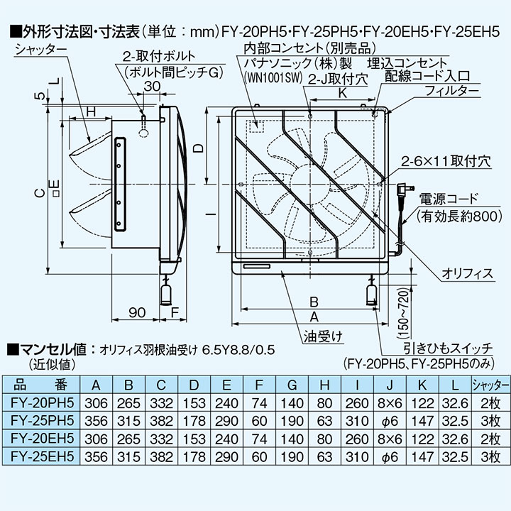 【FY-20PH6】パナソニック 一般用・台所用換気扇 フィルター付換気扇 交換式フィルター付 排気・引きひも連動式シャッター 20cm 【panasonic】※品番にて注文をさせていただきます。メーカーにて品番の確認をお願いいたします。画像はイメージです。 高性能HPモーターの採用で省エネ、しかもおそうじラクラク。 ●省エネ ●おそうじカンタンワンタッチ着脱 ●省施工 ●低騒音化 ●細かい繊維を組み合わせた交換式フィルターで油をしっかりキャッチ。 ●交換式フィルター付 ●排気・引きひも連動式シャッター ●スイッチ内蔵:引きひも式 ●オリフィス:樹脂製 ●羽根:樹脂製 ●フィルター:不織布 ●フィルター、羽根、油受けは、それぞれワンタッチで着脱可能。 ●換気扇の内部に、別売の埋込コンセントを取り付けて直接配線可能。 ●引きひも長さ調節可能。 ●埋込スイッチ等での連動はできません。 ●交換用フィルター(別売品)FY-FST20