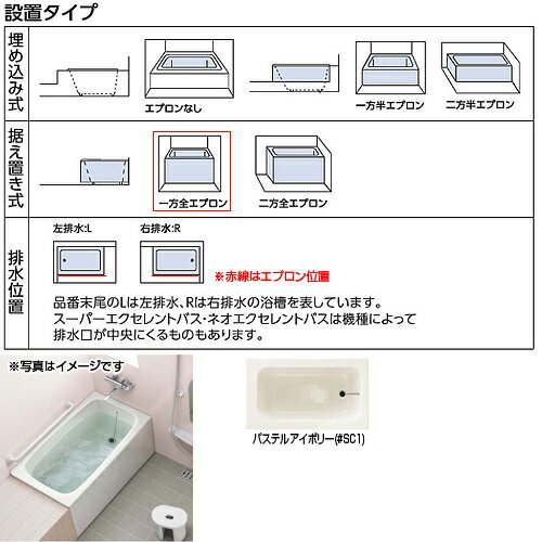 【送料無料】TOTO 浴槽 ポリバス 据置浴槽 1100サイズ 一方全エプロン ゴム栓式 パステルアイボリー P153R/L