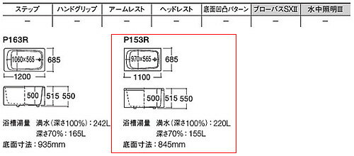 【規格・特徴】 ・外寸法:1100×685×550mm ・内寸法:970×565×500mm ・底面寸法:845mm ・満水量:220L ・質量:18kg ・一方全エプロン ・ゴム栓式(間接・直接共通排水金具付き) ・浴槽素材:FRP 【カラー】 ・パステルアイボリー(SC1) 【ご購入前に】 ※浴槽を壁に2ヶ所で固定して下さい。(別売PZ6063 (2個入)) ※必ず搬入経路を確保してください。 ※24時間風呂対応不可 ※排水栓の位置(右/左)を選択できます。参考画像にてエプロンと排水の位置関係を見てください。 ※浴槽のみの価格です。バス水栓、シャワーバス水栓等は別売品です。 ※エプロン付浴槽は、照明の影響で浴槽本体とエプロンの色合いが異なって見える場合があります。 ※浴槽に張った水の色は、浴槽カラーが白色系、ブルー系ではブルーグリーンがかかり、赤色系や色みが強いものの場合はやや暗く見える傾向があります。 【穴あけ加工について】 ※通常よりも納期を要します。詳細の納期につきましてはお問い合わせください。 ※ご希望の場合は別途、穴あけ加工費+3850円(税込)がが必要となります。 ご希望の際は、購入時の備考欄に「穴あけ加工希望」と記載ください。 ※当社では、長辺側の穴あけ加工は対応しておりません。 長辺側の穴あけ加工につきましては施工者様に一度ご確認くださいませ。 【商品説明】 据置タイプのお手頃価格のFRP浴槽です。 【メーカー直送便の注意事項】 下記の条件がございますので、商品によってはご準備くださいますようお願い致します。 ※別途金額が発生する場合がありますので必ずご一読ください。 ■商品お渡しについて 基本ドライバー1人で訪問の為、荷下ろしの際にお手伝いできる方が必要となります。 集合住宅の場合は1階及びエントランス、戸建住宅の場合は玄関先でのお引き渡しとなります。 ■配送車について 一般的な宅配業者でございません。メーカー指定の大型トラック(4t車)にての配送となります。 道幅6m(一般的な軽自動車がすれ違える道幅)以下の場合、配達ができません。 別途追加料金が発生いたしますが、2tトラックでの手配が可能です。 階段、狭所など困難な場合はご相談ください。 ■商品お届け日について メーカーに在庫があり、日にち指定がない場合は、翌日、または翌々日のお届けとなります。ご希望日がありましたらご注文フォームの「お届け日時」にご記入ください。(平日のみ) 納期要確認の記載のある商品や受注生産商品の場合、納期にお時間が掛かります。詳細な納期については商品により異なりますので、改めて当店よりご連絡させて頂きます。 ■お届け時間について 時間指定が出来かねます。必ず連絡が取れる電話番号と荷受人のお名前を記載ください。 当日の配送時間(目安)については、配送前にドライバーよりご連絡させて頂きます。 (配送前連絡はサービスとなりますので確約するものではございません) ■不在時の再配達について 不在の場合は運送会社が持ち帰り、当日の再配達が出来かねます。 また保管料・再配達の手数料が発生する場合(お客様負担)がございますのでお届け日には必ずご在宅いただけますようお願い致します。 ■配送エリアについて 沖縄・離島地域の場合、別途費用がかかる場合がございます。 ■お支払い方法について 「後払い」「クレジットカード」「銀行振込」「郵便振替」のみとなります(代金引換は不可)。 ご入金確認後にメーカーへ発注させていただきます。 【大型商品の配送について】 ■基本ドライバー1人で訪問の為、荷下ろしの際にお手伝いできる方が必要となります。 ■大型トラック(4t車)にて配送となります。 道幅6m(一般的な軽自動車がすれ違える道幅)以下の場合、配達ができません。 ※別途追加料金が発生いたしますが、2tトラックでの手配が可能です。 階段、狭所など困難な場合はご相談ください。 ■時間指定が出来かねます。 その為、必ず連絡が取れる電話番号と荷受人の名前を記載ください。 当日の配送時間(目安)については、配送前にドライバーよりご連絡させて頂きます。 P153R P153L FRP浴槽 2019年10月TOTOP153
