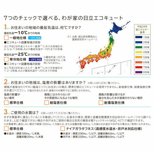 ※こちらの商品は配送時に必ず荷受人が必要となります。 また車上渡しとなります為、お客様のみでの荷下ろしが必須です。 上記ご確認の上、注文手続きにお進みください。 ※工事もご検討のお客様は基本当社施工店送りとなりますのでお荷受けは不要です。 一部対象外の地域がございます。詳しくはお見積りご依頼下さい。 ※補助金対象に該当するWLAN接続アダプター付リモコンをセットにしたページです。 【セット内容】 (1)BHP-F46XD ・貯湯ユニット ・ヒートポンプユニット (2)BEM-1A ・上部固定金具セット ※貯湯タンクの転倒防止の為、基本セットに上部固定金具も含みます。 (3)BER-X1FH-T ・インターホンリモコンセット(無線アダプター付属)(浴室/台所) (4)BEAK-46X ・脚部カバー ※部材費など、別途必要となります。 【規格・特徴】 ・フルオート ・460L(4〜6人用) ・角型 ・ナイアガラ出湯 ・水道直圧給湯 ・屋外設置用 ・一般地(-10度対応) 【サイズ】 貯湯ユニット ・外形寸法(mm):幅650×高さ2,101×奥行730 ・質量(kg):75/約535(製品質量/満水時質量) ヒートポンプユニット ・外形寸法(mm):幅792(+117)×高さ720×奥行299(+62) ・質量(kg):43 【別売部材】 ・サブリモコン BER-X1FS ・シールド付リモコンコード(2芯・10m) BERC-10M2A ・HEMS用接続アダプター(有線用) BH-HEMS-W ・ふろ循環アダプター(ストレート、L曲がり兼用) BDAD-SCA ・シルキー快泡浴用ふろ循環アダプター BDAD-FBA ・シルキー快泡浴用ふろ循環アダプターの交換用フィルター BH-FB-FILTERA ・3階浴そう用水流スイッチ BH-S-SWB※3階に浴槽を設置している際に必須 ※別売り部材は一例です。詳しくは当社までお問い合わせください。 【機能】 ・ウレタンク ・水道直圧給湯方式 ・高速湯はり ・追いだき ・ダブル湯温設定 ・シルキー快泡浴※必ずシルキー快泡浴用ふろ循環アダプター(別売)を使用してください。 ・インテリジェント制御 ・おまかせ小世帯 ・来客時満タン沸き上げ ・節約サポート機能 ・きらりUVクリーン ・ステンレス・クリーン自動洗浄システム ・入浴剤対応 ・汚れガードパネル ・太陽光発電利用沸き上げ ・ECHONET Lite AIF認証対応 ・日立エコキュートアプリ ・耐震クラスS対応 【商品説明】 お湯、エコに快適に使いませんか? そこで日立のエコキュート! 断熱性が高い「ウレタンク」で省エネ。 暮らしと家計にもっとやさしく おふろをもっと心地よく、給湯をもっとかしこく 浴室と台所など同時にパワフル給湯で快適な水道直圧給湯 【メーカー直送便の注意事項】 下記の条件がございますので、商品によってはご準備くださいますようお願い致します。 ※別途金額が発生する場合がありますので必ずご一読ください。 ■商品お渡しについて 基本ドライバー1人で訪問の為、荷下ろしの際にお手伝いできる方が必要となります。 集合住宅の場合は1階及びエントランス、戸建住宅の場合は玄関先でのお引き渡しとなります。 ■配送車について 一般的な宅配業者でございません。メーカー指定の大型トラック(4t車)にての配送となります。 道幅6m(一般的な軽自動車がすれ違える道幅)以下の場合、配達ができません。 別途追加料金が発生いたしますが、2tトラックでの手配が可能です。 階段、狭所など困難な場合はご相談ください。 ■商品お届け日について メーカーに在庫があり、日にち指定がない場合は、翌日、または翌々日のお届けとなります。ご希望日がありましたらご注文フォームの「お届け日時」にご記入ください。(平日のみ) 納期要確認の記載のある商品や受注生産商品の場合、納期にお時間が掛かります。詳細な納期については商品により異なりますので、改めて当店よりご連絡させて頂きます。 ■お届け時間について 時間指定が出来かねます。必ず連絡が取れる電話番号と荷受人のお名前を記載ください。 当日の配送時間(目安)については、配送前にドライバーよりご連絡させて頂きます。 (配送前連絡はサービスとなりますので確約するものではございません) ■不在時の再配達について 不在の場合は運送会社が持ち帰り、当日の再配達が出来かねます。 また保管料・再配達の手数料が発生する場合(お客様負担)がございますのでお届け日には必ずご在宅いただけますようお願い致します。 ■配送エリアについて 沖縄・離島地域の場合、別途費用がかかる場合がございます。 ■お支払い方法について 「後払い」「クレジットカード」「銀行振込」「郵便振替」のみとなります(代金引換は不可)。 ご入金確認後にメーカーへ発注させていただきます。 【大型商品の配送について】 ■基本ドライバー1人で訪問の為、荷下ろしの際にお手伝いできる方が必要となります。 ■大型トラック(4t車)にて配送となります。 道幅6m(一般的な軽自動車がすれ違える道幅)以下の場合、配達ができません。 ※別途追加料金が発生いたしますが、2tトラックでの手配が可能です。 階段、狭所など困難な場合はご相談ください。 ■時間指定が出来かねます。 その為、必ず連絡が取れる電話番