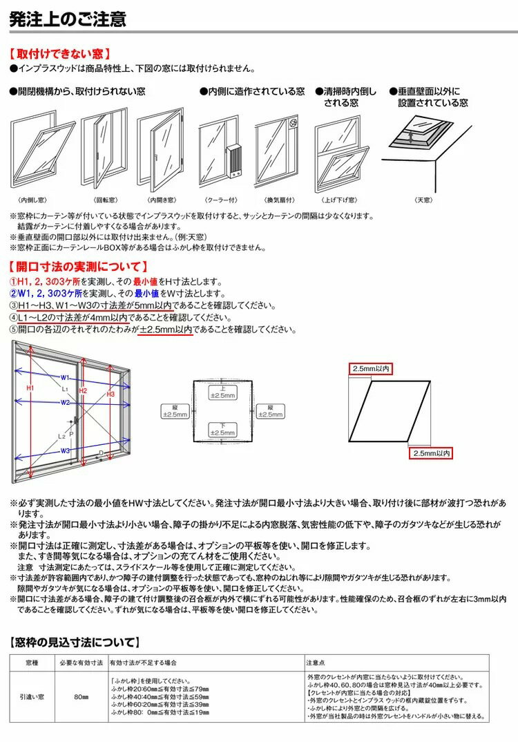 選択項目よりお好みの仕様をご選択下さい。 支店止めをご希望のお客様は「会社概要」にある「配送について」内の西濃運輸営業所止め可能一覧を参照願います。LIXIL 樹脂サッシ 防音 断熱内窓 インプラス TOSTEM トステム リフォーム 窓 DIY サッシ ドア 内窓 防音 断熱 結露 選択項目よりお好みの仕様をご選択下さい。 支店止めをご希望のお客様は「会社概要」にある「配送について」内の西濃運輸営業所止め可能一覧を参照願います。 メーカー LIXIL(リクシル) 商品名 防音・断熱内窓 インプラス 選択項目 カラー・ガラス・寸法・その他オプション セット内容 内窓枠 内窓本体 納期(発送日) ご入金確認後から約15営業日(3週間程度)〜(土日祝及び夏季休暇・年末年始除く) ※現在メーカーにて製作納期遅延が発生しているため、お急ぎの場合は事前にご確認ください。 送料 本州への配送は基本無料 ※大型商品の場合、北海道、四国、九州、沖縄、離島は配送料無料の対象外となります。 ※大型商品の個人宅、現場への配送は別途送料が掛かる場合がありますので、 一度ご確認ください。 ※西濃運輸営業所止めをご希望の場合、こちらのページより営業所をお選びいただき 選択肢のフリー入力欄に店舗名をご記載ください。 備考 【以下の点にご注意願います】・ご希望の仕様をご選択いただきました分の、後ろに表示されております金額は、 自動計算、自動送信メールには反映されません。 受注承諾メールにて確定金額をご連絡致しますので、 予めご理解とご了承頂けます様お願い致します。 ・枠の組立、把手などの部品は現地にて組立願います。・配送による工期の遅れ等、商品破損以外の保証は一切致し兼ねます。・商品の到着日時を指定はできません。・商品到着後3日以内に中身をご確認いただき、傷や破損などが無いかをチェックして下さい。 3日以上経ちますと当店での保証が出来兼ねますのでご注意下さい。 必ず3日以内に確認し、ご連絡いただきますようお願い致します。 営業所止めを指定した場合は、その場で商品の状態を確認してください。 引き上げた後に見付かりました傷、破損については、保証の対象外となってしまいます。・お客様の注文まちがい(商品、数量、色のイメージ違い、オプション等の組み合わせ)による 交換・返品は受け付けておりませんので予めご了承願います。・荷物も受け渡しは全て軒先降ろしとなります。・トラックが通行出来ない幅員の道路の場合はお届けできません。・詳しくはこちらをご覧ください 取付説明書 こちらのページよりご注文いただきました商品の説明書をお探し願います。 お支払方法 各種クレジット 銀行振込 郵便局 コンビニ決済 等※代引きはご利用頂けませんのでご注意ください。※クレジットカードでのお支払いをご希望の方は こちらのページのお支払い期限についてもご確認願います。 問合せ 商品に関するご相談・お問合せ LIXILお客様相談室 電話番号:0120-413-433 受付可能時間 月-金 9:00-17:00 土/日/祝/9:00-17:00 (年末年始/夏季休暇等を除く)