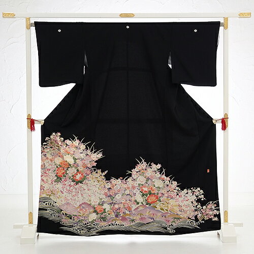 黒留袖 レンタル おすすめ 正絹 4319 本加賀友禅 土田外男氏作 女性和服 留袖 留め袖 着物レンタル 結婚式 貸衣装 フルセット 和服 40代 50代 母親 姉 妹 親族 チャペル 人気 往復送料無料 新品足袋プレゼント 【レンタル】