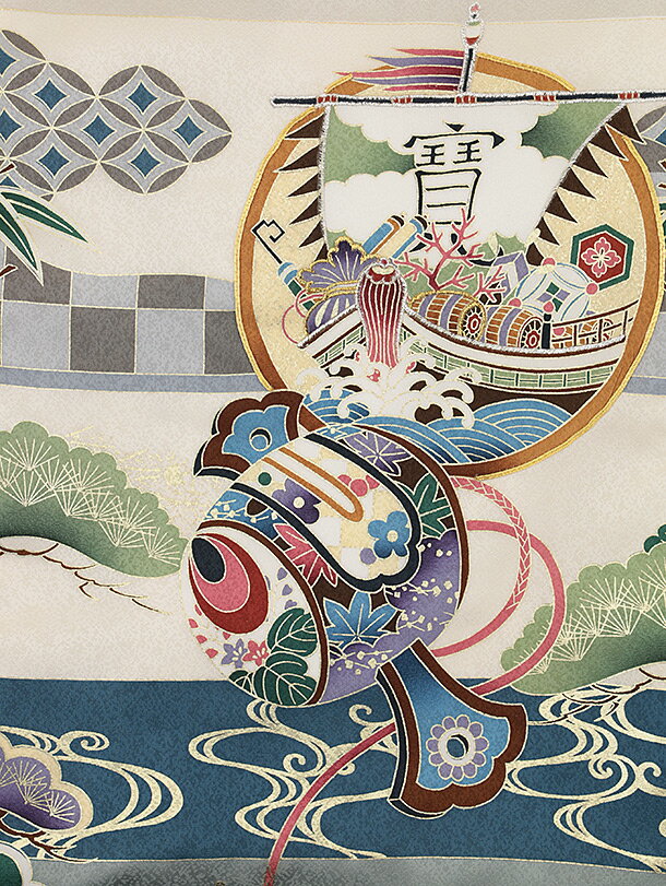 お宮参り 産着 レンタル 男の子 男児産着 お宮参りレンタル2783【正絹】グレー地 宝船と小槌に松 男児 祝着 初着セット 記念撮影 赤ちゃん 往復送料無料【レンタル】
