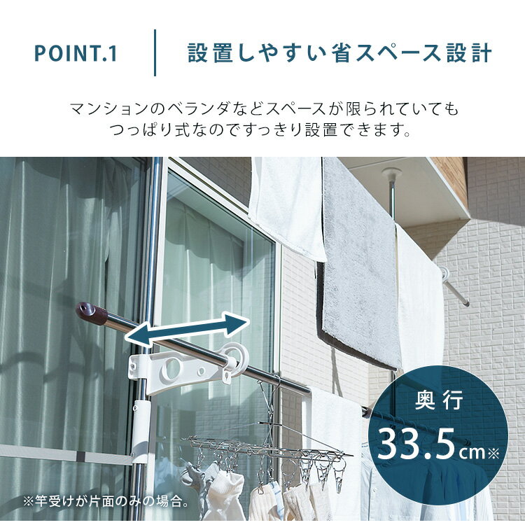 ※注文確定時に時間指定のプルダウンが出てくる場合がございますが、設置込み商品ご注文の場合は時間指定できかねますので、予めご了承ください。 お届け先が沖縄・離島の場合、お届け日時のご希望に沿えない場合がございます。予めご了承ください。 商品特徴 ※2024年10月18日リニューアルしました!〜5人用から、〜7人用が追加になりました! 2024年12月16日リニューアルしました。・外箱のデザインが変更になりました。※仕様に変更はありません。 ●2025年6月4日 項目選択肢を変更致しました。 ※仕様に変更はありません。 ※リニューアルに伴いパッケージ・内容等予告なく変更する場合がございます。予めご了承ください。 ※金曜日の正午12時以降のご注文は最短で翌営業日の発送となります。予めご了承の上、ご注文ください。 【ステンレスベランダ物干し SVIー275NR】 省スペースに設置できるステンレスベランダ物干し。 ◆point1 省スペースに簡単設置! マンションのベランダなどスペースが限られていてもすっきり設置可能! ≪CHECK≫ ・軒下と床との高さが210〜275cm ・ベランダの手すりから最低でも40cm離す ・物干し竿の両サイドが40cm以上のスペースがある ≪設置方法≫ プラスドライバーで簡単に取り付けができます。 1.天井に突っ張る 2.竿受けを固定する ◆point2 段違い干しで気になる視線を遮る 竿受けは上下に移動できるので、洗濯物を段違いに干せます。 下着などは見えにくい奥へ干して安心。 ◆point3 高さ調節可能 洗濯物に合わせて竿受けを上下に移動できるので、丈の長い洗濯物も地面につかずに干せます。 風通しも良くなるので布団干しにも! 物干し竿落下防止ストッパー付き。 ◆point4 5人分が一気に干せる 家族みんなの分をたっぷり干せます。 週末にまとめ洗いをする一人暮らしの方にもおすすめ! 耐荷重は約30kg。 ≪一度に干せる目安≫ シャツ等15枚、バスタオル5枚、タオル5枚、小物24枚。 ※ハンガーとピンチハンガーを使用。 ◆point5 ステンレス製でさびにくい ステンレス製なのでさびにくくて丈夫。 お手入れもさっと拭くだけで簡単◎ 【分割できるステンレス物干し竿2.8m SU-280C】 シンプルで使いやすい!ストレート物干し竿。 ◆ストレート物干し竿 ハンガーやタオルなど、干すものを選ばない、定番の形。 ◆両端伸縮でバランスよく調整 両端がそれぞれ伸縮するから、洗濯物の量に合わせて自由に長さを変えられる。 ◆耐荷重約8kg しっかりした太さのパイプで洗濯物をしっかり支えます。 ◆コンパクトになるジョイント式 悪天候などで家の中にしまいたいときも、分解すれば持ち運びやすいサイズに。 部屋の中でも場所を取らずに収納できます。 ◆お手入れラクラク ステンレス製だからサビにくく丈夫。お手入れが簡単。 ★お客様組立★ 【ステンレスベランダ物干し SVIー275NR】 ●商品サイズ(cm) 奥行約33.5〜58×高さ約210〜275 ●商品質量 約3.6kg ●耐荷重 全体:約30kg 1本あたり:約8kg 竿受1組当たり:約16kg ●取付け可能竿数 最大4本 ●適合する物干し竿 直径2.5〜3cm ●取付け可能高さ 約210〜275cm ●付属品 竿受2組、ストッパー8ヶ ●干す量の目安 約5人分(シャツ等15枚、バスタオル5枚、タオル5枚、小物24枚) ●材質 ステンレス巻きスチールパイプ、ポリプロピレン、ABS樹脂、EVA樹脂 ●必要工具 +ドライバー、握り部分が直径30mm以上のものをご使用ください。 ※インパクトドライバーは使用しないでください。 破損するおそれがあります。 ※天井面がボード等やわらかい材質の場合、必ず芯材のある位置へ取り付けて下さい。 芯材がない位置へ設置すると天井が破損する恐れがあります。 【分割できるステンレス物干し竿2.8m SU-280C】 ●伸縮の長さ 約1.6〜2.8m ●全体耐荷重 約8kg ※耐荷重は測定値であり、保証値ではありません。 ●主要材質 ステンレス巻きスチールパイプ/ABS樹脂 (検索用:物干し ステンレス巻き 物干し竿 3m 選べる2本・4本セット 洗濯物干し 物干しスタンド 物干し台 屋外 スタンド 竿掛け 取り付け バルコニー 竿 受け ハンガー ベランダ 突っ張り棒 つっぱり 4905009407361 4967576741040) 検索キーワード 物干し 屋外 アイリスオーヤマ ベランダ 突っ張り棒 物干しスタンド ステンレス ハンガーラック ベランダ物干し アイリスオーヤマ 送料無料 つっぱり式 洗濯干し ベランダ用 物干し台 布団干し ふとん干し SVI-300NR 物干し 室外 ベランダ 大容量 屋外 物干し竿 アイリスオーヤマ 突っ張り棒 物干し台 物干しスタンド ベランダ物干し ハンガーラック ステンレス 送料無料 布団干し 物干し竿 竿 屋外物干し 突っ張りタイプ SVI-275NR 最強翌日配送対象商品に関するご案内 最強翌日配送対象商品・対象地域に該当する場合は最強翌日配送マークがご注文カゴ近くに表示されます。 最強翌日配送可能なお支払方法は【クレジットカード、代金引換、全額ポイント支払い】のみとなります。 下記の場合は最強翌日配送対象外となります。 15点以上ご購入いただいた場合、 時間指定がある場合、 ご注