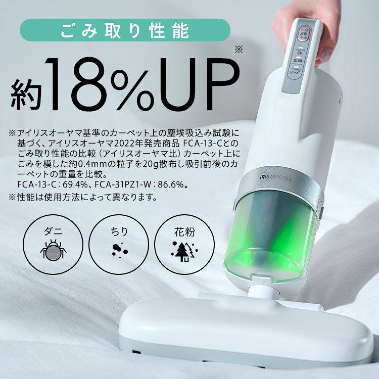 【新商品!ハイパワー】布団クリーナー アイリスオーヤマ ふとんクリーナー 布団掃除機 温風 ダニ対策 毛取りヘッド 抜け毛 ペットの毛 髪の毛 花粉 軽量 ハイパワー ダニちりセンサー 水洗い 布団用 FCA-31PZ1-W ベッド ソファ 枕 ラグ *