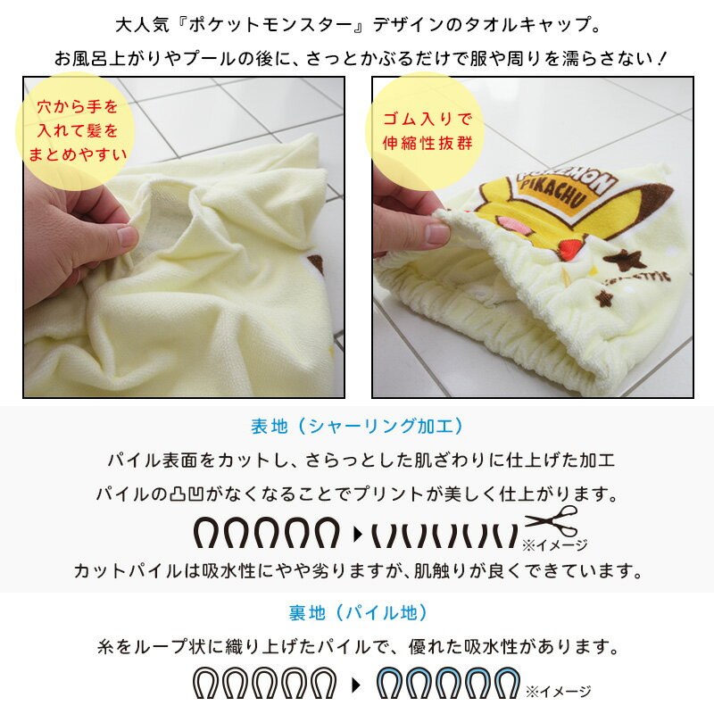 \ポイント2倍 11月30日まで/ポケットモンスター ポケモン キャップタオル 20×42cm 綿100% キャラクター ピカチュウ イーブイ 保育園 幼稚園 小学生 ドライキャップ 男の子 女の子 ジュニア キッズ かわいい タオルキャップ[kpt]【メール便OK】