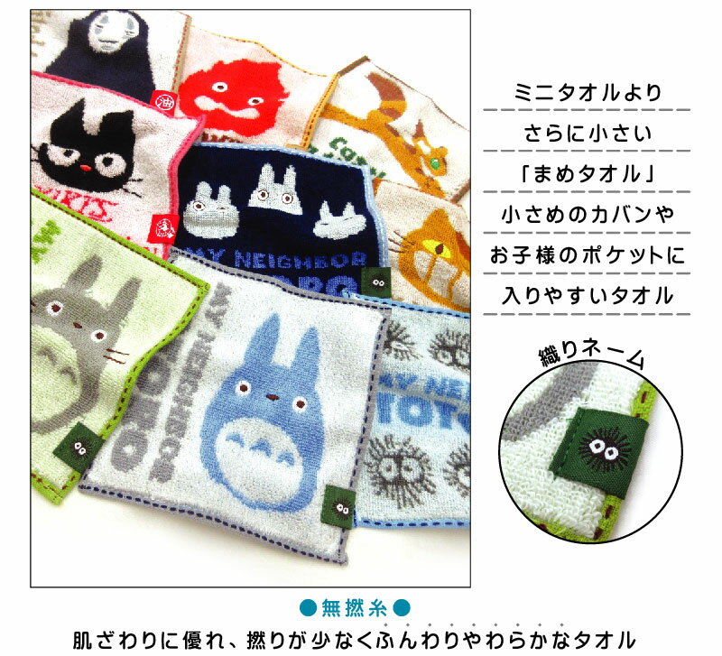 【エントリーで最大P6倍 27日1:59迄】スタジオジブリ まめタオル 15×15cm 綿100% 無撚糸 キャラクター となりのトトロ 魔女の宅急便 千と千尋の神隠し ハウルの動く城 天空の城ラピュタ プチタオル 豆タオル 保育園 幼稚園 小学生 ミニタオル[pt1]【メール便OK】