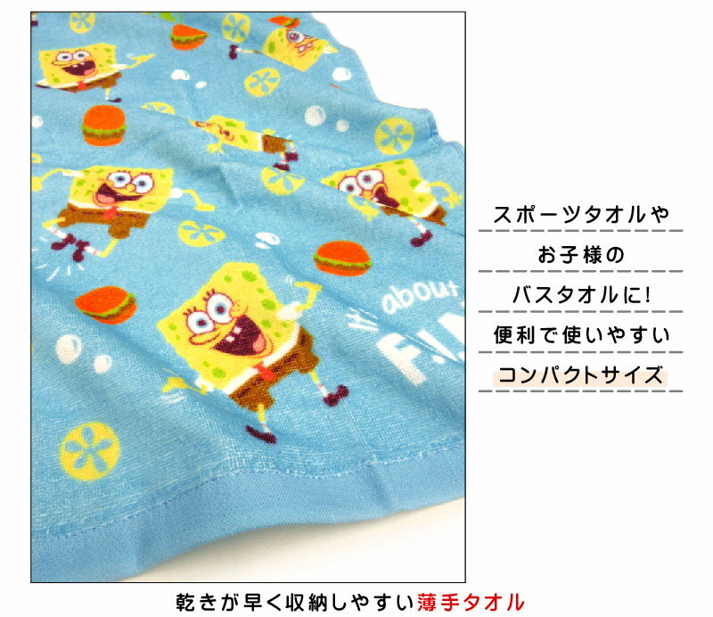 【20日20:00~27日1:59 エントリーでP5倍】スポンジボブ コンパクトバスタオル 50×100cm 綿100% スカイドリーム キャラクター 保育園 幼稚園 小学生 プール 水遊び タオル 湯上りタオル 男の子 女の子 小さめ ミニバスタオル[cbt]【メール便OK】