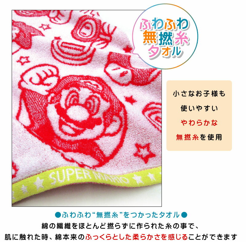 \ポイント2倍 11月30日まで/スーパーマリオ フェイスタオル 34×80cm 綿100% 無撚糸 パイルジャガード 両面パイル地 抗菌防臭加工 アイテムアンドフェイス キャラクター 任天堂 マリオ ルイージ 首にかけて 汗拭きタオル としても大活躍[ft1]【メール便OK】