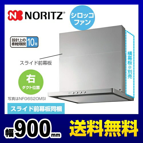 [NFG9S20MSI-R] ノーリツ レンジフード スリム型ノンフィルター シロッコファン 間口900mm コンロ連動なし ダクト位置右 シルバー スライド前幕板同梱 【送料無料】