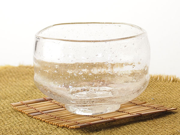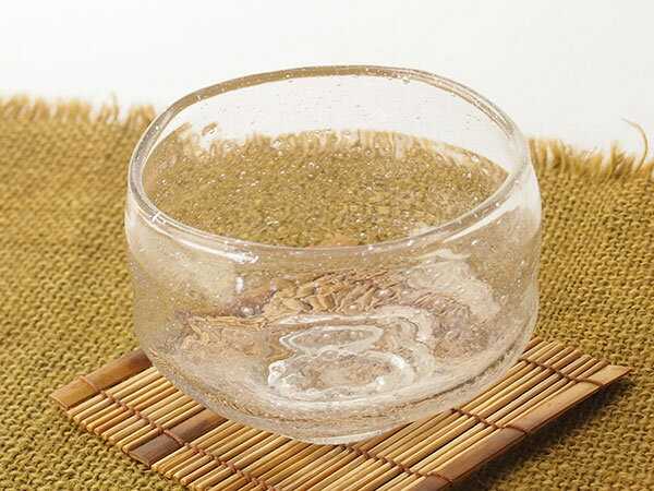 ガラスの涼しげなお碗でお抹茶いかがでしょうか?グリーンティーや冷たいお茶を入れておもてなしにおしゃれです。かき氷や氷を敷いたお刺身の器にしたりして清涼感UP!ちょっと大きめですけど、お蕎麦やそうめんのつけダレ入れにしても面白いですね。今年の夏は見た目にも涼しげな食卓を演出してみてください。サイズ: 直径 10.7x高さ 6.8cm生産:中国ガラス商品は耐熱使用ではありませんので熱湯の使用は出来ません。また、このガラスは吹きガラスのため形状やサイズが個々に少しずつ異なります。