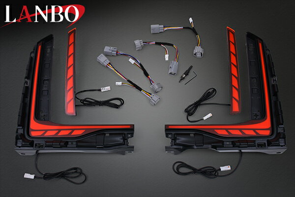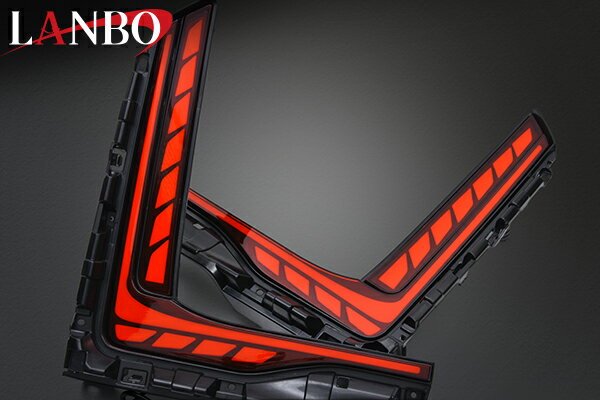 <LANBO LEDリフレクターガーニッシュ > リフレクターを増設しLEDライトで魅せる!! 3WAY仕様でリアビューの目立ち度アップ! 反射板をLED化することで視認性の向上と発光部を拡大することで後続車両へのアピールになります。 ポジションONでオープニングアニメーションが作動 ウインカー連動で内側は縦に!外側はL字にシーケンシャル点灯します。 高輝度LEDを採用した高い発光精度。 ポジション時70%、ブレーキ時100%の発光量で後続車両への視認性向上。 ウインカー作動時はレッドアンバーカラーのLEDがシーケンシャル発光。 各動作終了後、オープニングアニメーションが作動します。 カプラーON設計ですので配線加工不要。 納期:在庫状況により、お届けまでに約2ヶ月ほどお時間をいただく場合がございます。お急ぎの方はお気軽にお問合せください。 <LANBO LEDリフレクターガーニッシュ > メーカー名 LANBO 品名 LANBO LEDリフレクターガーニッシュ 品番 WD103935+WD103936 適合車種 ヴェルファイア[AGH/AHH/TAHA 40・45W] JAN なし セット内容 リフレクター本体 左右 リフレクターガーニッシュ 左右 配線コネクター一式 電動ドライバードリルビット(配線通し穴加工用) 注意事項 取り付けには配線作業が必要となりますのでショップ様や電装系に詳しい方に作業依頼をお勧めします。 ※取り付け作業は自己責任にてお願いいたします。 本製品は車検対応品ではございません。車検時は純正に戻して入庫してください。