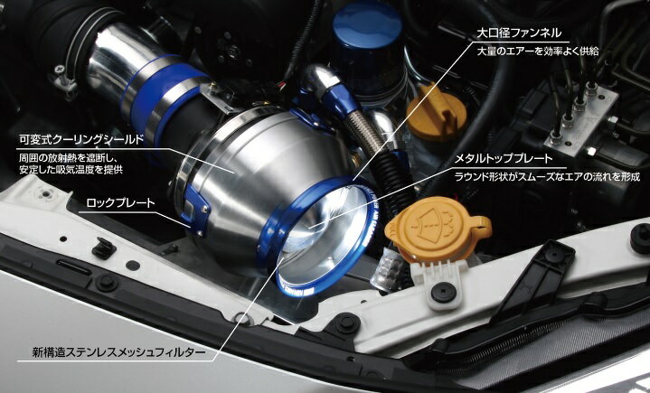 ☆BLITZ 【ブリッツ】 ADVANCE POWER AIR CLEANER☆ 「アドバンスパワーエアクリーナー」 BLITZインテーク技術の融合が、新たなパフォーマンスを提供する。 ◇「SUS POWER AIR CLEANER」の吸入効率と、 従来品「SONIC POWER AIR CLEANER」の 耐熱性能を兼ね備え、 進化したコアタイプエアクリーナー。 ◇「SUS POWER AIR CLEANER」譲りの高い吸入効率と、 レーシーな吸気サウンドを生み出すステンレスメッシュフィルターを採用。 ◇大口径ファンネル付きのクーリングシールドが周囲の放射熱を遮り、 フィルターの発熱を防止。 ◇フィルターの温度上昇を抑えることで、 安定した吸入温度を提供した高い充填効率を維持。 ◇可変式シールド構造により、フィルター周囲に大量の空気を確保することができ、 瞬間的な吸入空気増大に高い効果を発揮。 ◇大口径ファンネルが大量のエアを効率よく供給し、 高い吸入効率を実現。◇アルミ製のクーリングシールドと、ブルーアルマイトされた ロックプレートが存在感をアピールしエンジンルームをレーシーに演出。 ☆BLITZ 【ブリッツ】 SUCTION KIT 「サクションキット」 内部抵抗の低減により、吸入効率の向上とレスポンスアップを実現 ◇純正サクションの形状を見直すことで、内部抵抗の低減、吸入効率を向上させ、 エンジンレスポンスを向上させます。 ◇専用設計でボルトオン装着が可能。 ◇本体材質にアルミ、ジョイントにブルーシリコンを採用することにより、耐久性と安全性を確保。 ◇エンジンルームをスパルタンに演出します。 ※アドバンスパワーエアクリーナー(42275)とサクションキット シリコンホースカラー ブルー(55300) GR86 ZN8 / BRZ ZD8 共通設定品のセット販売となります。 ○ メーカー欠品等により納期にお時間を時間を要する場合があります。また、予告無く仕様変更や価格改定および販売終了となることもございますので、誠に恐れ入りますがご注文前にご確認をお願いします。 ○ 掲載画像の一部はZN6/ZC6用の商品装着イメージです。 ○ 沖縄県・他離島への送料は異なります。(ご注文後に訂正させていただきます) ※ ご注文後のお客様事由(誤発注も含む)や納期の遅延、相違等によるキャンセル・商品変更・数量変更はいたしかねますのでご了承下さい。