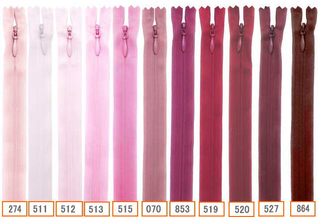 【56cm】YKKコンシールファスナー 薄地(2cc) 色:ピンク・赤系 全86色 ≪30本までメール便OK≫