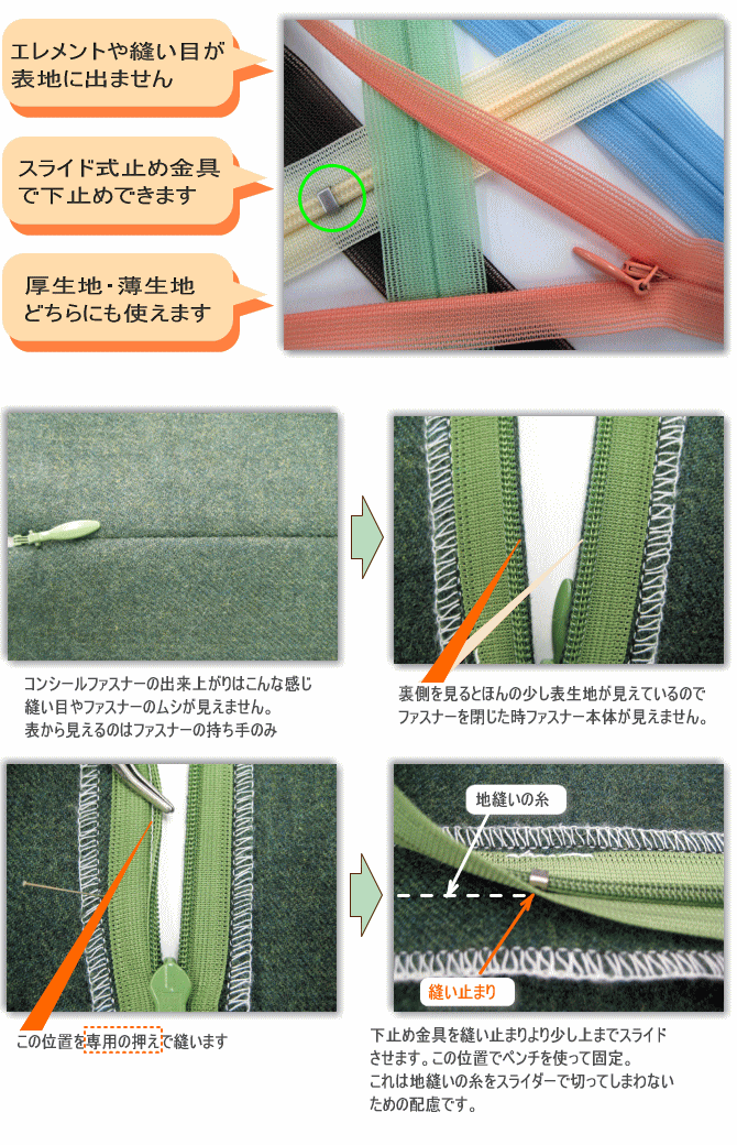 コンシールファスナー56cmの色展開 ★白・ベージュ系 ★茶系 ★黄・オレンジ系 ★ピンク・赤系 ★紫系 ★グレー・黒系 ★ブルー系 ★グリーン系 色番070、515、513、512、511の5色は、取引先には在庫が無く、YKKへの発注となる受注生産品ですので時間が掛かります。 ある程度の在庫を確保できるよう常時発注していますが、ご注文のタイミングやご注文数量により、在庫数が足りない場合がございます。 その場合、1〜2週間お待ちいただくことを何卒ご了承くださいませ。