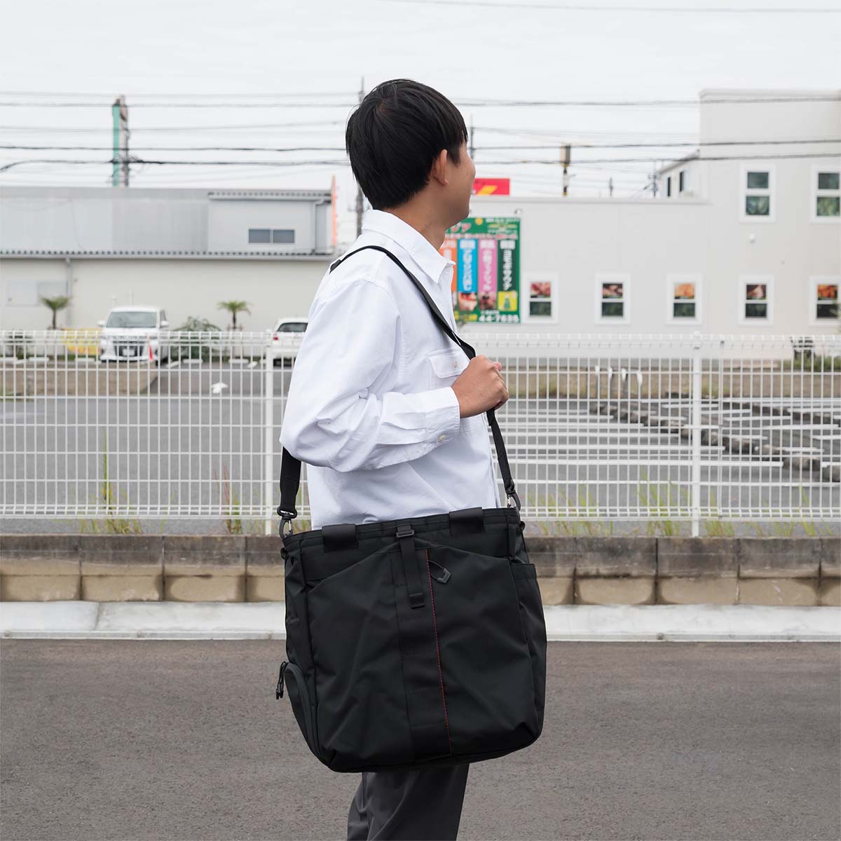 ■ 商品番号 BRA253T16 ■ 特徴 仕事帰りにジムへ通う方々や休日にスポーツを楽しむ方々へ向けたアイテム提案を行っている「URBAN GYM COLLECTION」の大容量トートバッグ。 スポーツシーンとビジネスをブリッヂする機能性や仕様はそのままに、ビスネームや引手紐のデザインをアップデート。 クリーンなルックスは男女ともに取り入れやすく、幅広いシーンでお使いいただけます。 【おすすめポイント】 -環境に配慮- ・工場から回収された製造廃棄物を再生したコーデュラをメインに使用。 原料の消費を抑え、廃棄物を減らし、焼却時の有害なガスを減少させるなど、環境に配慮。 ・糸の番手を縦横で変更し、高密度に織り上げたファブリックは強度に優れるのはもちろん、滑らかでクリアな表面感と絶妙な光沢感が艶やかな表情を作り出します。 ■ 素材 420×840 コーデュラエコHDオックス ■ サイズ 横幅:34cm × 高さ:38cm × マチ幅:23cm ■ 重量 約960g ■ 生産国 中国 ■ カラー ブラック / グレー ■ その他 なるべく実物に近づけるように撮影しておりますが、ご使用のPCやスマホの画面上と実物では多少色具合が異なって見える場合もございます。 ■ 関連キーワード 20代 30代 40代 50代 男 女 男子 女子 男性 女性 メンズ用 レディース用 メンズバッグ レディースバッグ メンズ用バッグ レディース用バッグ メンズカバン レディースカバン 人気 ブランド シンプル おしゃれ カジュアル スタイリッシュ スマート プレゼント ギフト お祝い ラッピング 入社祝い 就職祝い 小さい 小さめ このブランドの商品一覧はこちら> トートバッグの一覧はこちら>BRIEFINGURBAN GYM EASY WIRE 仕事帰りにジムへ通う方々や休日にスポーツを楽しむ方々へ向けたアイテム提案を行っている「URBAN GYM COLLECTION」の大容量トートバッグ。 スポーツシーンとビジネスをブリッヂする機能性や仕様はそのままに、ビスネームや引手紐のデザインをアップデート。 クリーンなルックスは男女ともに取り入れやすく、幅広いシーンでお使いいただけます。 【おすすめポイント】 -環境に配慮- ・工場から回収された製造廃棄物を再生したコーデュラをメインに使用。 原料の消費を抑え、廃棄物を減らし、焼却時の有害なガスを減少させるなど、環境に配慮。 ・糸の番手を縦横で変更し、高密度に織り上げたファブリックは強度に優れるのはもちろん、滑らかでクリアな表面感と絶妙な光沢感が艶やかな表情を作り出します。 -幅広いシーンに対応- ・メイン収納部と完全セパレートした筒形ポケットをサイドに完備。 シューズなどを入れるほか汚れたウェアや小旅行での着替えなど、通常の荷物と分けて入れたいものを収納するのに便利。蒸れなどに配慮し、筒形ポケット入り口にはハトメを追加しました。 ・フロントに配したポケットはバックル式で、ラケットなど大きなものを収納してバックルで留めておくことが可能。 ・メイン収納部は間口を大きくとり、荷物の出し入れがしやすい構造に。 ・中の荷物を隠すことができるよう、間口にはジップ式の天蓋を完備。