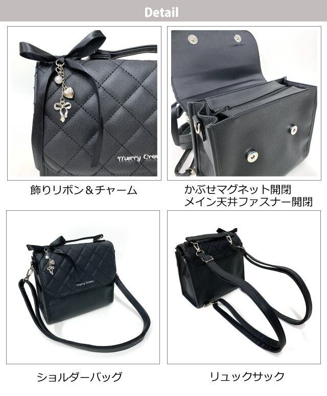 ・Merry Crown メリークラウン バレエチャーム リボンとチャームが大人ガーリーなサッチェルバッグ。 みんなの視線をひとりじめ。 3way仕様なのでおしゃれ女子はシーンに合わせて使い分け。 リュックはルーズに背負って、ショルダーは肩掛けにするとかわいいくコーデできちゃいます。 シンプルデザインなので長く使える! お誕生日プレゼント・クリスマスプレゼントとしても人気です。 商品詳細 商品名 Merry Crown バレエチャーム サッチェル 商品番号 mkt-523 素 材 角シボ合皮 カラー 3色(ブラック・ライトブルー・アイボリー)) 本体サイズ 約W22.5×H19.5×D11cm 重 量 約560g 仕様 マグネット開閉 ショルダーベルト長さ調節可能(約80〜150cm) A5サイズ対応 500mlペットボトル&長財布同時収納OK 生産国 中国 お祝いやイベントギフト・季節の贈り物に お誕生日 birthday バースデー クリスマス Xmas Christmas 御祝い・プレゼント・入学祝い・進学祝い・ギフト 配送業者 主に佐川急便・ゆうパック アイテム名 バッグ バック かばん 3wayバッグ 3wayバック サッチェル サッチェルバッグ サッチェルバック サッチェルリュック リュック リュックサック ショルダーバッグ ショルダーバック 斜めがけバッグ 斜めがけバック 斜め掛けバッグ 斜め掛けバック ポシェット ハンドバッグ フラップ かぶせ 対 象 女の子・女子・小学生・学校・キッズ・こども・子供 girl ガール 中学生 中学 小学校 女児 高学年 低学年 小1 小2 小3 小4 小5 小6 レディース 用 途 塾通い お稽古 習い事 社会見学 学習 部活 通園 レッスン 通塾 校外学習 お出かけ デイリー 旅行 普段使い お買い物 お出かけバッグ イメージ・その他 おしゃれ お洒落 人気 人気 ランキング 可愛い かわいい 使いやすい ブラック 黒 水色 ブルー りぼん リボン ホワイト 白 アイボリー 大人っぽい 合皮 ガーリー オルチャン ハートチャーム リボンチャーム チャーム シンプル 使いやすい 韓国 韓国風 キッズショルダー 小型 小さめ 無料ラッピング おすすめ 流行 お出かけバッグ お出かけカバン ラッピング対応 ミニリュック 商品カテゴリ:【キッズ ショルダーバッグ 女の子】【ショルダーバッグ 小学生 女の子】【斜めがけバッグ キッズ】【キッズ ポシェット 女の子】【ショルダーバッグ 斜めがけ 小学生 女の子】【小学生 斜 めがけ バッグ】【3way キッズ バック】【リュック 女の子 小学生 おしゃれ】・Merry Crown メリークラウン バレエチャーム リボンとチャームが大人ガーリーなサッチェルバッグ。 みんなの視線をひとりじめ。 3way仕様なのでおしゃれ女子はシーンに合わせて使い分け。 リュックはルーズに背負って、ショルダーは肩掛けにするとかわいいくコーデできちゃいます。 シンプルデザインなので長く使える! お誕生日プレゼント・クリスマスプレゼントとしても人気です。 サイズ約W22.5×H19.5×D11cm 素 材角シボ合皮カラー3色(ブラック・ライトブルー・アイボリー) 重量約560g詳 細マグネット開閉 ショルダーベルト長さ調節可能(約80〜150cm) A5サイズ対応 500mlペットボトル&長財布同時収納OK ※記載しております、サイズ・重量は測定方法により若干異なる場合があります。 ※商品の写真は、撮影の状況等により実際の商品と色合いなどが若干異なる場合があります。 ※出来る限り新しく入荷した商品の画像を掲載しておりますが、製造時期により予告なく仕様変更される場合がございます。
