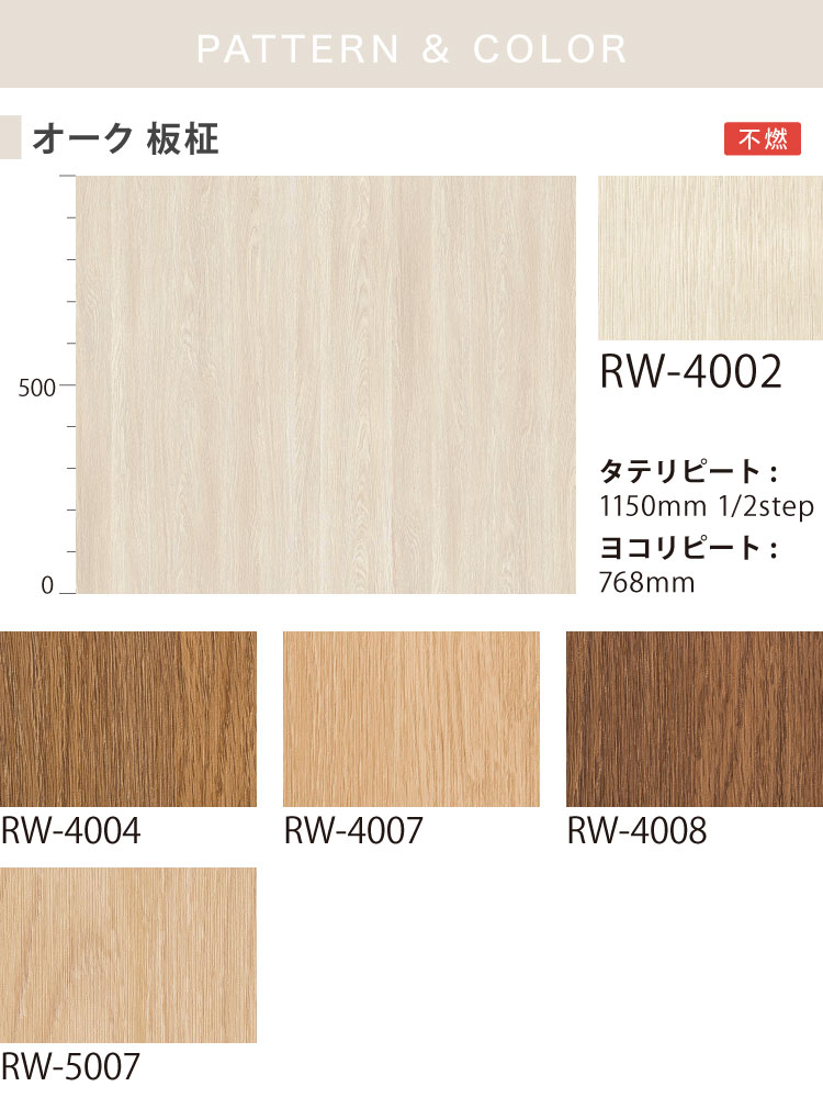 サンゲツ リアテック 日本製 リアルウッドエクストラ 122cm巾 木目調 エンボス加工 リアル 建具 [1m以上10cm単位 切り売り] オーク ビッグリピートオーク エンボスマッチオーク 商品の詳しい情報ブランド名サンゲツ品種粘着シート商品名REATEC(リアテック)リアルウッドエクストラ | オーク ビッグリピートオーク エンボスマッチオーク掲載品番RW4002 RW4004 RW4007 RW4008 RW5007 RW5411 RW5412 RW5413 RW5414 RW5415 RW5649 RW5650商品PR自然の木の質感。エンボス表現がリアルな木目シリーズ規格122cm巾素材塩化ビニル厚さ約0.2mm取引単位1m以上10cm単位不燃詳しくはシリーズ別の商品情報「防火認定」の項目をご確認ください。ホルムアルデヒド放散等級F☆☆☆☆注意事項※下地により、施工ができない・極端に接着力が強くなり作業性が悪くなる可能性がございます。「リアテック注意事項」を必ずご確認下さい。※画面上、色合いなど実際の商品と若干の違いがある場合がございます。 メーカー希望小売価格はメーカーカタログに基づいて掲載しています サンゲツ 粘着剤付化粧フィルムリアテック注意事項施工上の注意保管・運搬・メンテナンス上の注意製品仕様・各種性能シリーズ別の注意事項 リアテック用 下地処理剤幅広い用途に速乾性ベンリダインRTII強い密着力を発揮ベンリダインRP-100溶剤臭の少ない水性ベンリダインRA伸び易く塗ムラ少ないベンリダインRS リアテック用 副資材専用スキージー ページの上へモバイルページ品番RW-4002 RW-4004 RW-4007 RW-4008 RW-5007防火認定6-3施工上のご注意シリーズ別の注意事項ページ内の【エンボスが深い商品(B)】【リアルウッドエクストラシリーズ(G)】をお読みください 品番RW-5411 RW-5412防火認定6-3施工上のご注意シリーズ別の注意事項ページ内の【エンボスが深い商品(B)】【リアルウッドエクストラシリーズ(G)】をお読みください 品番RW-5413 RW-5414 RW-5415防火認定6-3施工上のご注意シリーズ別の注意事項ページ内の【エンボスが深い商品(B)】【リアルウッドエクストラシリーズ(G)】をお読みください 品番RW-5649 RW-5650防火認定6-3施工上のご注意シリーズ別の注意事項ページ内の【エンボスが深い商品(B)】【リアルウッドエクストラシリーズ(G)】をお読みください
