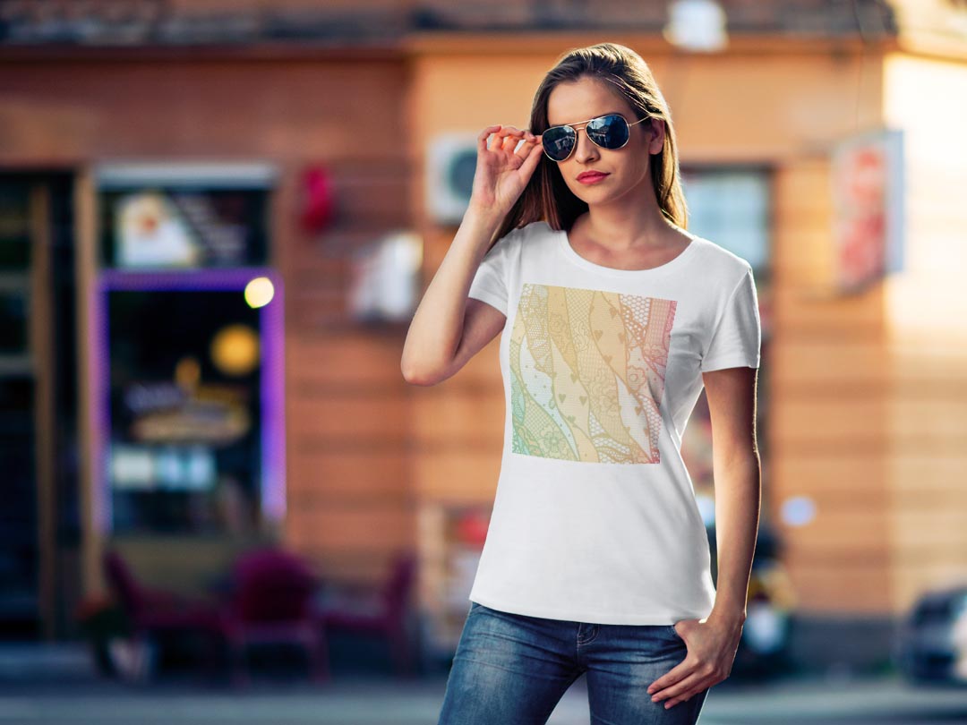 tシャツ レディース 半袖 白地 デザイン M L 白 ホワイト グレー Tシャツ ティーシャツ T shirt 005550 ラブリー レース 模様