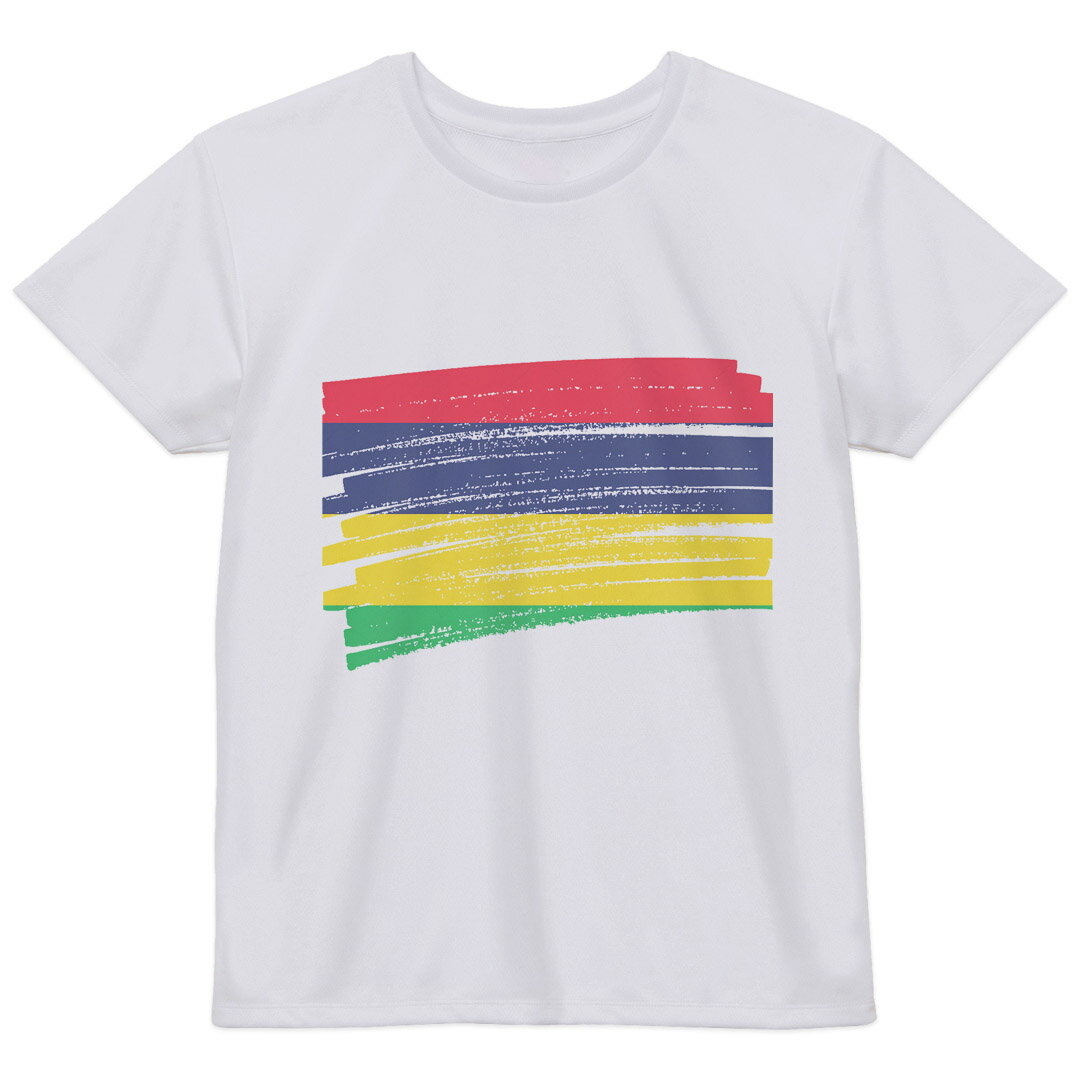 レディース ドライTシャツ ホワイト 半袖 4.1オンス ジム トレーニング スポーツ 運動会 ドライアスレチック UVカット 紫外線遮蔽 吸水速乾 デザイン Tshirt M L 国旗 mauritus モーリシャス 018506