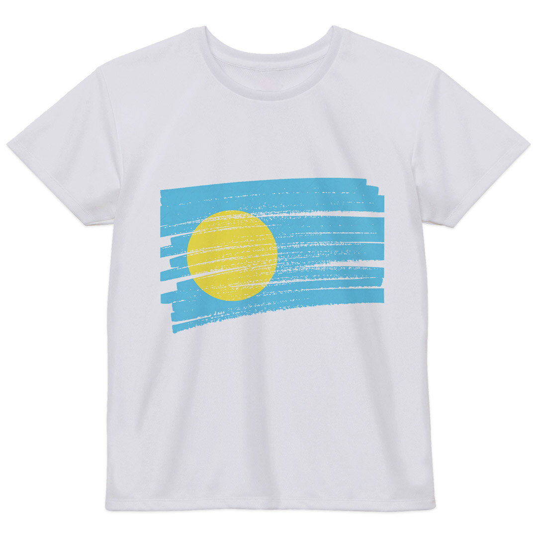 レディース ドライTシャツ ホワイト 半袖 4.1オンス ジム トレーニング スポーツ 運動会 ドライアスレチック UVカット 紫外線遮蔽 吸水速乾 デザイン Tshirt M L 国旗 palau パラオ 018531