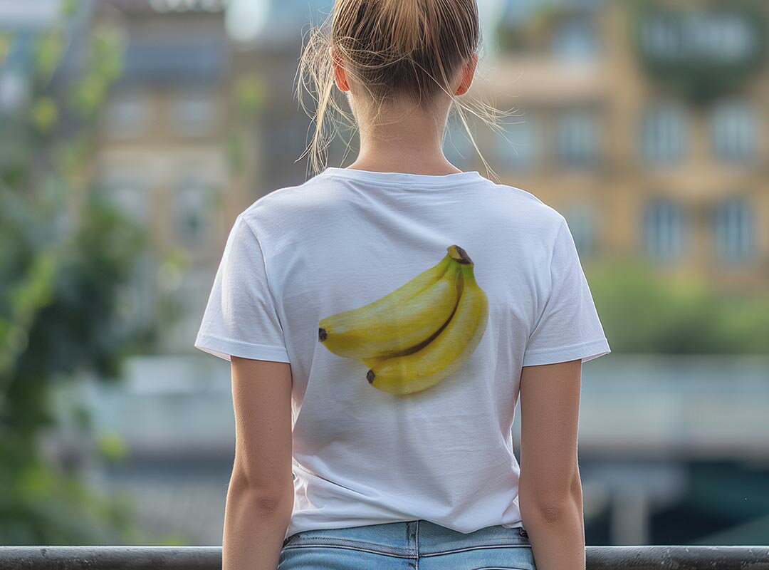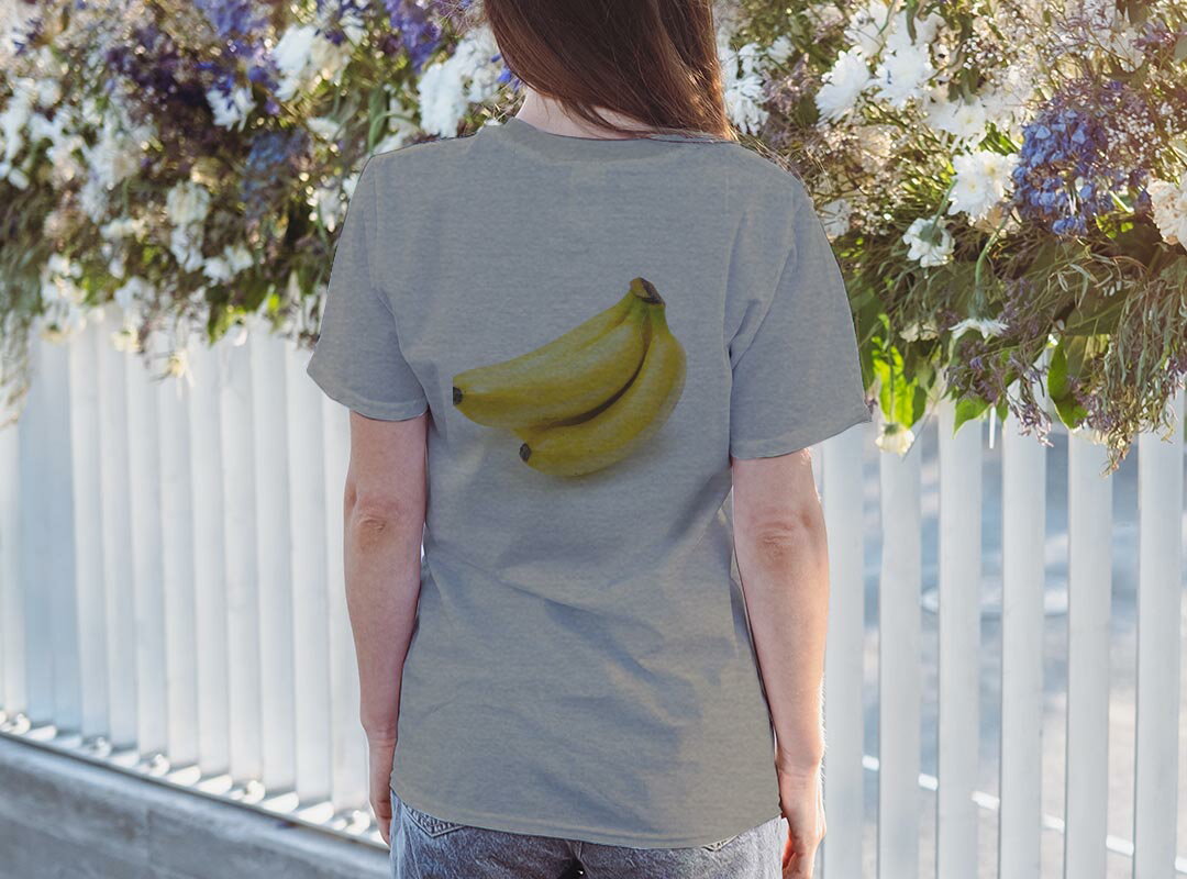 Tシャツ レディース バックプリント 半袖 ホワイト グレー デザイン M Lティーシャツ T shirt 001182 バナナ フルーツ 果物