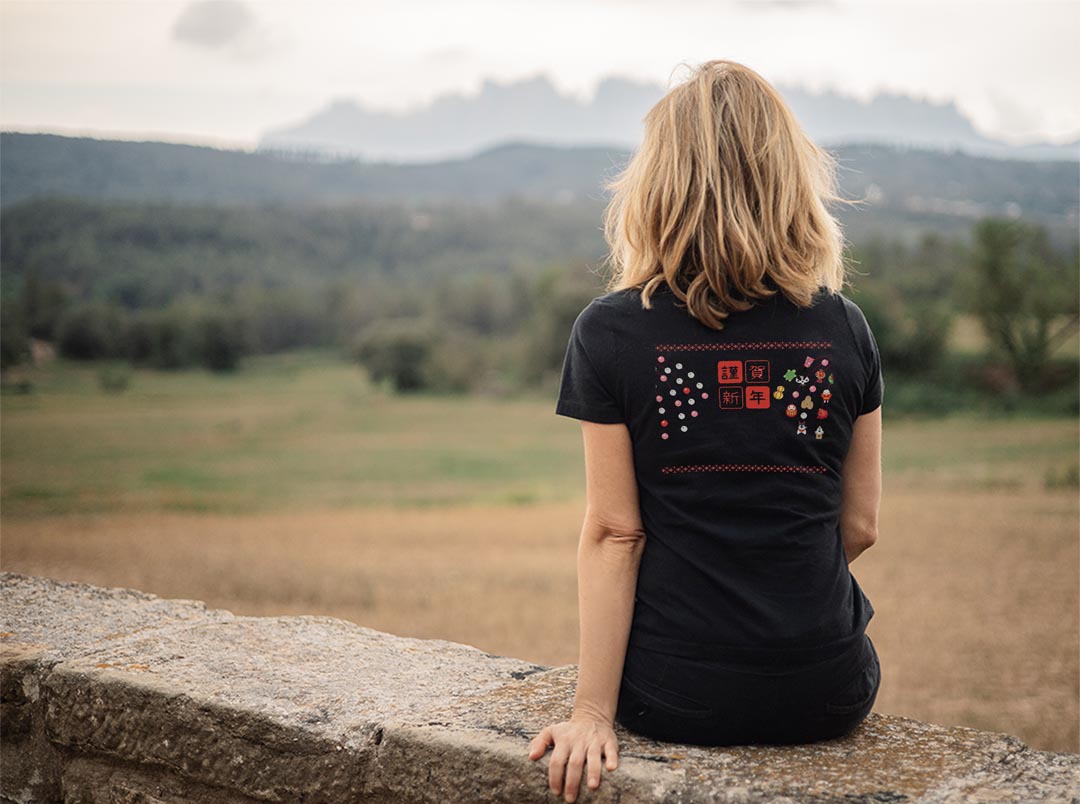 Tシャツ レディース バックプリント 半袖 ブラック 黒 デザイン M L tシャツ ティーシャツ T shirt 015429 新年 謹賀新年 お正月