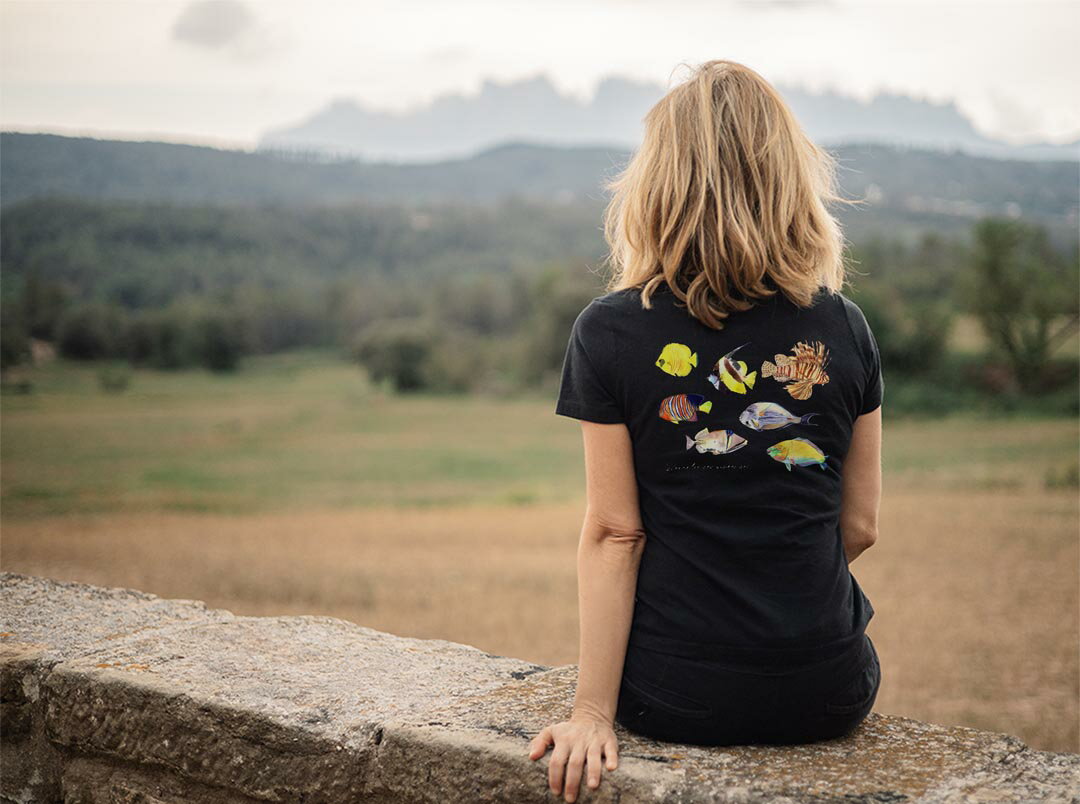 Tシャツ レディース バックプリント 半袖 ブラック 黒 デザイン M L tシャツ ティーシャツ T shirt 014827 魚 イラスト